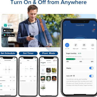 $57.61Add to cartRefresh your air with convenient smart features, aromatherapy, and ultrasonic technology, all packed into 1 sleek humidifier. The Classic 300S provides widespread humidity and soothing aromas for as long as 60 hours. It comes paired with the free VeSync app, so you can enjoy full control of your humidifier from your phone. Monitor your rooms humidity, use voice control, create schedules and timers, and more. With an effective range of up to 2047 m, it can cover virtually any room in the house. The convenient top-fill design makes cleaning and refilling the humidifier quick and easy.