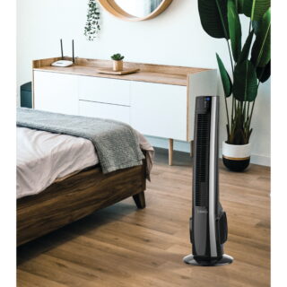 Lasko 38″ 4-Speed Hybrid Oscillating Remote Controlled Tower Fan. Black, T38415