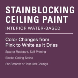 $44.58Add to cartKILZ Stainblocking Ceiling Paint is a unique combination of stainblocking technology and a coverage/dry time indicator. This color changing, stainblocking paint offers excellent coverage for water stains, color changes and to brighten drab ceilings. This ceiling paint rolls on with a subtle pink color that dries to white in under an hour. Dries to touch in 1 hour. Recoat in 2 hours. For use on all interior ceilings. Spatter-resistant formula rolls on easily with low odor making it a great choice for any room. Apply with a quality nylon/polyester brush or a 3/8″-1/2″ nap roller depending on surface texture. Can also be applied with a sprayer. See product packaging for complete application instructions. KILZ Stainblocking Ceiling Paint offers excellent coverage for minor to moderate staining