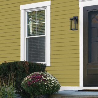 $44.00Add to cartGlidden One Coat Exterior Paint is a super-premium quality paint that provides in one coat coverage* an enhance UV protection finish. This 100% acrylic paint provides a mildew resistant coating, excellent hide and adhesion, and exceptional resistance to fading, cracking & peeling on many exterior projects including properly prepared, exterior wood, brick, masonry, concrete, weathered aluminum, and primed metal substrates. Available in Flat, Satin, Semi-Gloss Sheens. Halo is a midtone, muted, sunny citrus yellow and the undertone is a mustard yellow. In a dining room this paint color will be beautiful. Combine it with floral tones for a traditional look.
