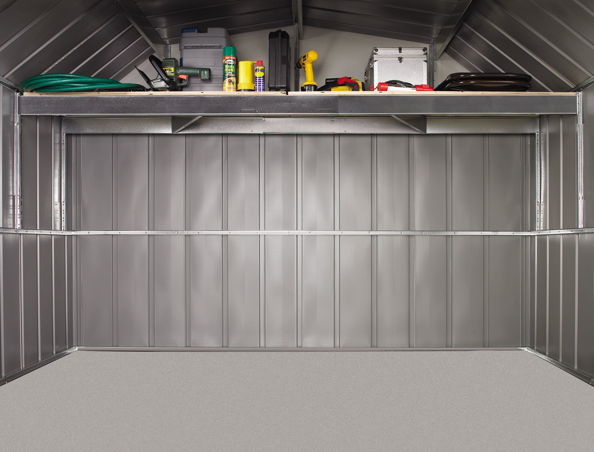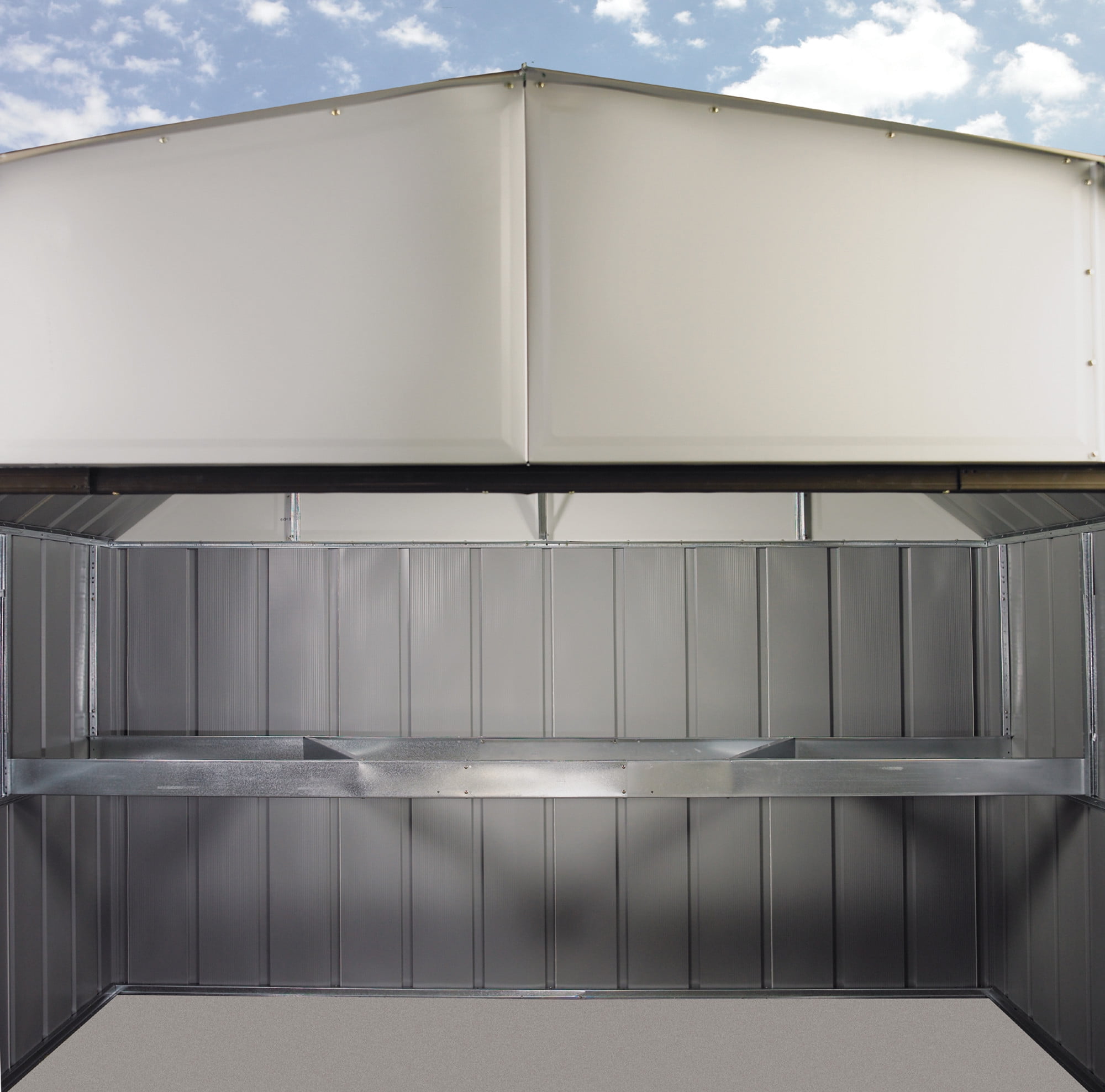 Adjustable To Any Of Five Heights For An Attic Or Workbench: Fits Any 10 Ft. Wide Arrow Shed: Holds Up To 250 Lbs Of Evenly Distributed Weight: Shelving Material Is Not Included: Hdg Steel Technology – Steel Undergoes A Hot Dipped Galvanization Process Providing Superior Corrosion Resistance:
