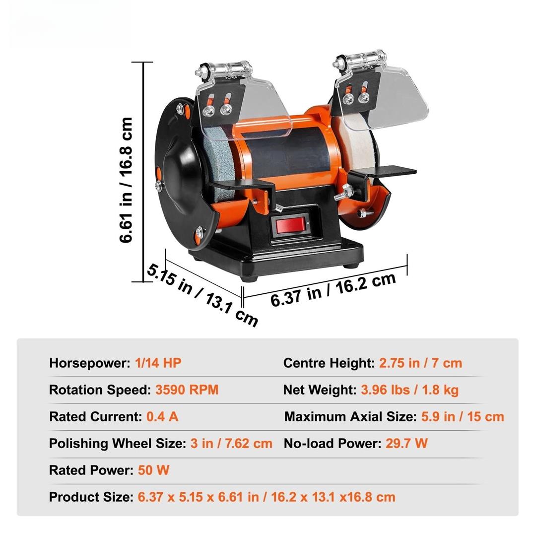 Product Description Bench Lathe Polisher Double-head Jewelry Making Polisher boasts 3 different polishing wheels for a more comprehensive and professional range. The powerful brushless motor features high torque and quiet running. No tedious maintenance steps are needed. Suitable for grinding, polishing, engraving, and punching raw stones, metals, wood, plastics, and rust removals. Brushless Motor 3590prm high speed motor is more durable, stable, and silent. No need to replace the carbon brush anymore. Three Polish Wheels Three different hardness of polish wheels can easily unlock a variety of stone sizes and angles as you want. Significantly increase your productivity and efficiency. More Compact Than You Think Only take up about 0.01m of space, sits on your work bench but not interfere with your other work. Multi-purpose Accessories It has a complete engraving set to achieve multi-functional extension, including drilling, engraving, grinding, and polishing. An actual multi-purpose bench buffer. Adjustable Tool Rests The front of the polishing wheel has a bracket, which can support angled grinding applications. More convenient and less effort. Splash Guard A transparent splash shield on the top can separate all kinds of debris splash while buffer running, better guarding your use security. Specifications Item Model Number: TDS-75B Centre Height: 2.75 in / 7 cm Maximum Axial Size: 5.9 in / 15 cm Rated Voltage/Frequency: 120V AC 60Hz Horsepower: 1/14HP Rated Current: 0.4A Rated Power: 50W No-load Power: 29.7W Rotation Speed: 3590RPM Polishing Wheel Size: 3 in / 7.62 cm Product Size: 6.37 x 5.15 x 6.61 in / 16.2 x 13.1 x16.8 cm Net Weight: 3.96 lbs / 1.8 kg Package Content 1 x Bench Buffer 1 x Open-end Wrench 1 x Box of 100pcs Bits 1 x Chuck (for 3.2 Bits ) 1 x L-shaped Cylindrical Wrench