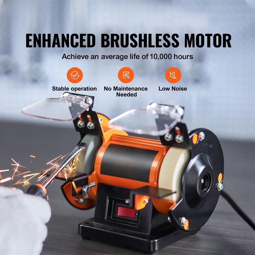 Bentism 3in 50W, 120V, 0.4A Cordless Power Tool Polisher, 3590 RPM Durable Brushless Motor: Upgraded to a brand-new brushless motor for longer life, allowing you to focus on your work with good durability and low noise. Virtually maintenance free with no need to replace the carbon brush 3 Polishing Wheels: Comes with a soft wool wheel, a moderate fiber wheel, and a hard grinding wheel. These wheels enable you to polish a wide range of gemstones and metals, from rough buffing surfaces to fine polishing and rust removal Lightweight Table Grinder: Weighing only 1.8 kg, this compact polishing buffer is easy to move and can be used anywhere without taking up too much space, making it suitable for both professionals and DIY enthusiasts Safety Features: The transparent flush deflector keeps debris splash away while the buffer is running, enhancing user safety. Adjustable tool rests support angled grinding applications, and non-slip feet ensure stability on any workbench 100+ Accessories: Includes 100 pieces of sculpting accessories to meet various rough and fine engraving needs. This benchtop buffer polisher is versatile for burnishing and polishing gemstones, metals, rust, and wood drilling. One device meets many needs