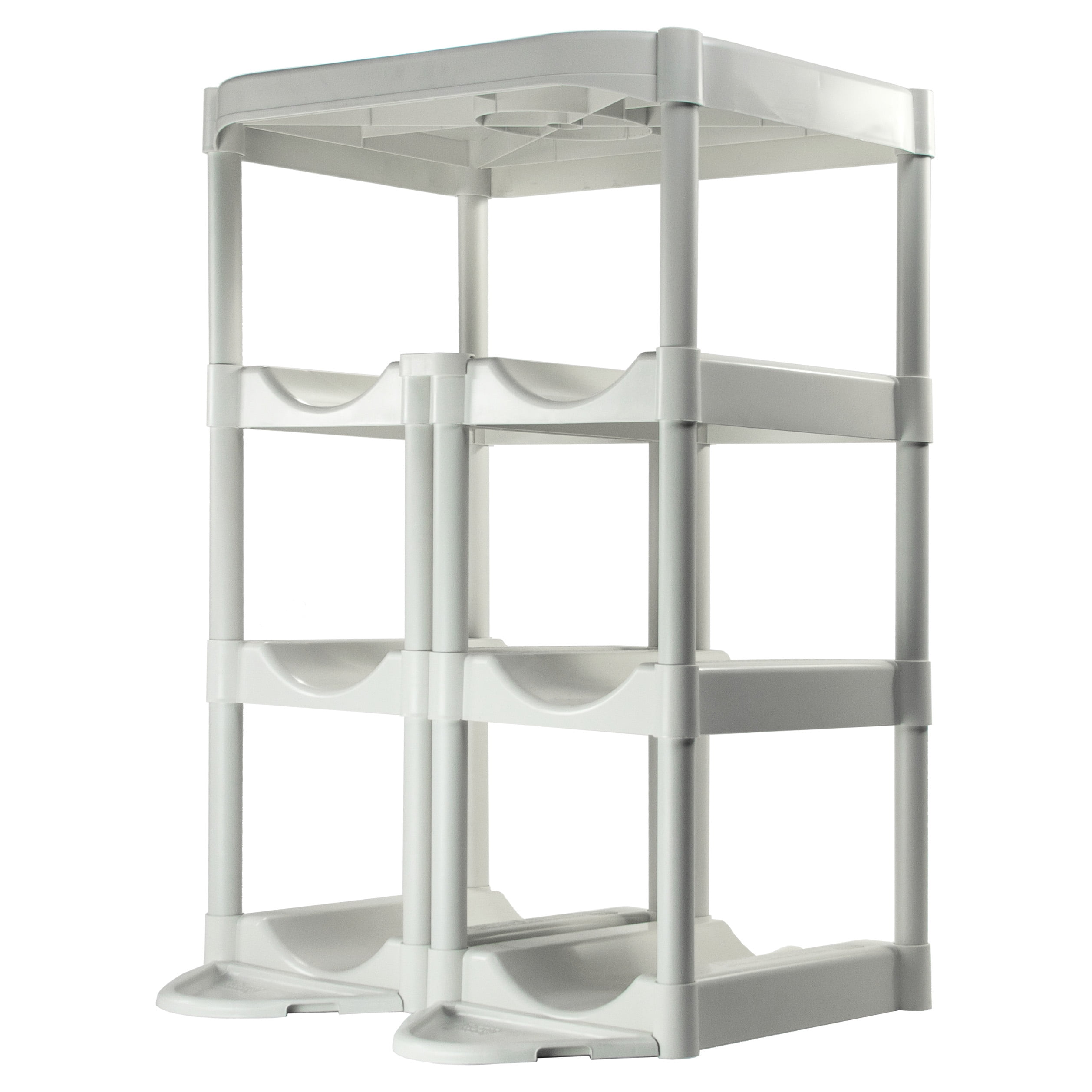 Holds 3 or 5-gal water bottles Holds up to 6 water bottles – Bottles are not included Each tray holds 50 lbs. Heavy Duty shelf holds 80 lbs. Perfect for the office or the home All plastic products will never chip, rust, peel, or corrode Floor Protector keeps floors dry Durable construction Easy to assemble, no tools required