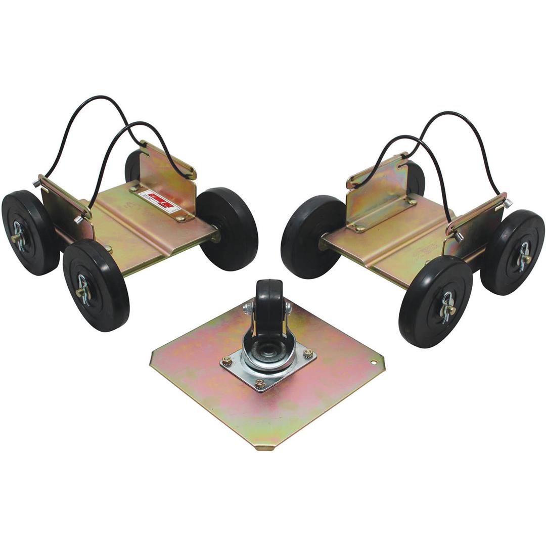 Transport your snowmobile with ease with the help of Extreme Max Power Wheels Drivable Snowmobile Dollies. These drivable, steerable accessories are designed for maximum versatility and durability. Whether you’re moving your sled on grass and dirt, or on a paved surface like concrete or asphalt, Power Wheels snowmobile dollies let you move your sled at speeds up to 5MPH. The set includes two ski dollies with cotter pin wheel assembly and bronzed graphite bearings as well as a track dolly with a caster wheel for non-motorized use. Drive or slide your sled into the shop, up a trailer ramp or reverse into tight spaces for storage. The swivel action of the casters enables turns even in areas with little clearance. Each Extreme Max snowmobile dolly also has steel cables coated in nylon for secure attachment that won’t scratch your vehicle.