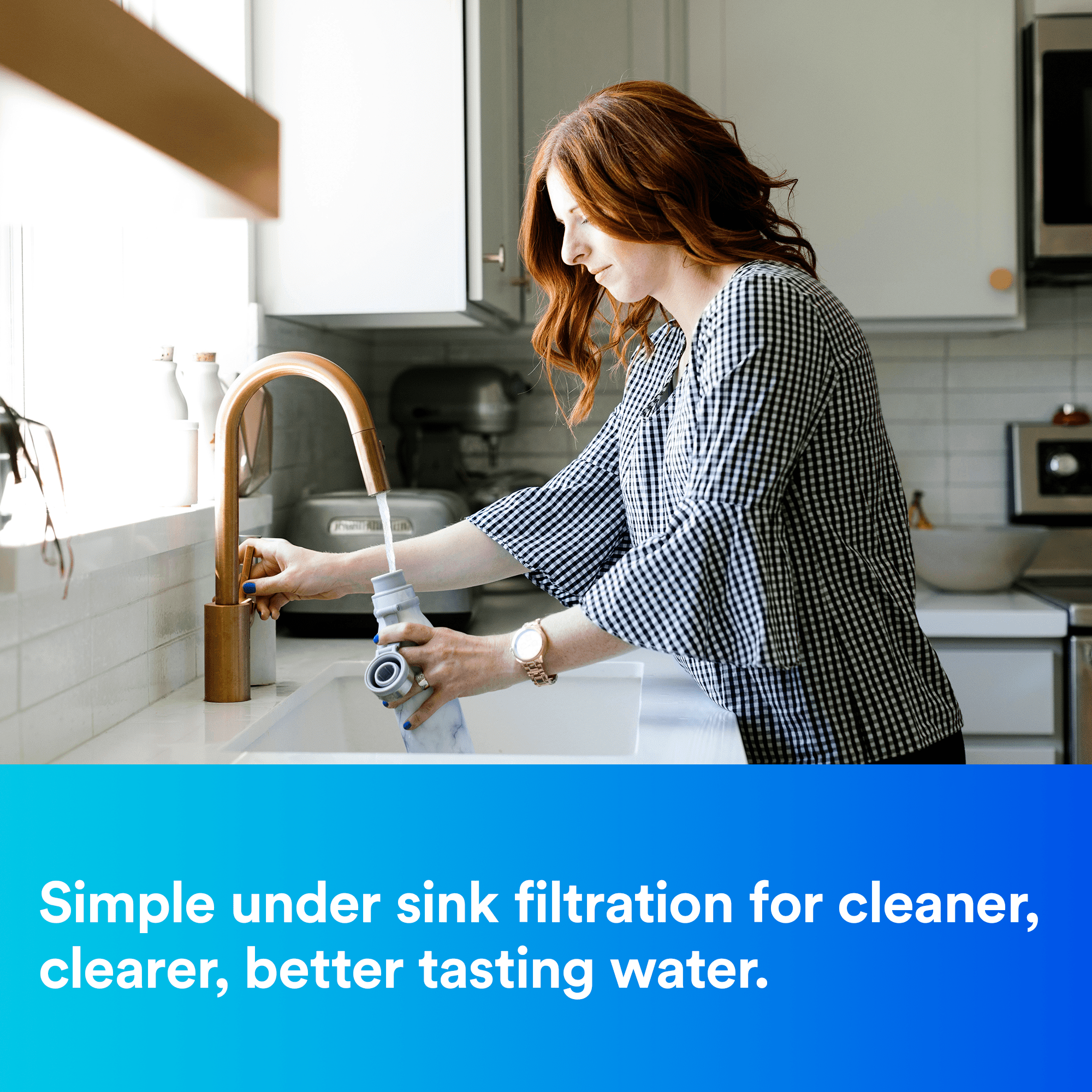 Enjoy better tasting water. This system features Healthy Living Filtration Level to reduce microbial cysts, chlorine taste and odor, sand, soil, silt, rust and sediment. A new system allows you to use your existing faucet without having to install a separate faucet. The system is NSF Standard 42 and 53 certified and uses Sanitary Quick Change replacement cartridges that requires a simple quarter turn for installation with no spilled water or mess to clean up.
