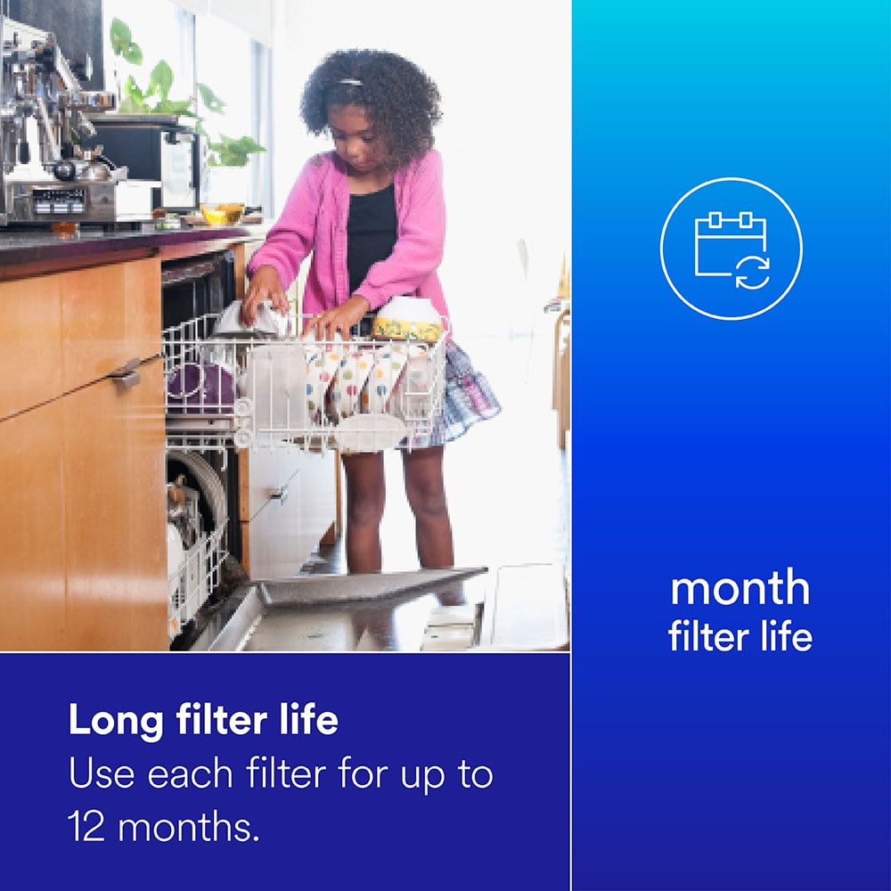 Filter Size: Large Capacity GREAT TASTE FILTRATION – These filter cartridges reduce chlorine taste & odor, sand, sediment, rust, and soil down to three microns – the best reduction as compared to other Filtrete Whole House Filtration Systems COMPACT DESIGN – This slim, compact cartridge takes up limited space under the sink. Assembled product length 10.62 in. Assembled product width 5.56 in. Assembled product height 15.5 in. QUICK CHANGE – This filter is easy to install, requiring just a 1/4 turn for a quick change. IDEAL FOR THREE OR MORE BATHROOM HOMES – These large capacity filters are recommended for households with three or more bathrooms. LONG FILTER LIFE – Use each filter for up to 12 months. NSF STANDARD 42 CERTIFIED – Model 4WH-QCTO-F01 is tested and certified by one of the world’s most respected independent certification organizations that helps protect the world’s food, water, consumer products, and environment.