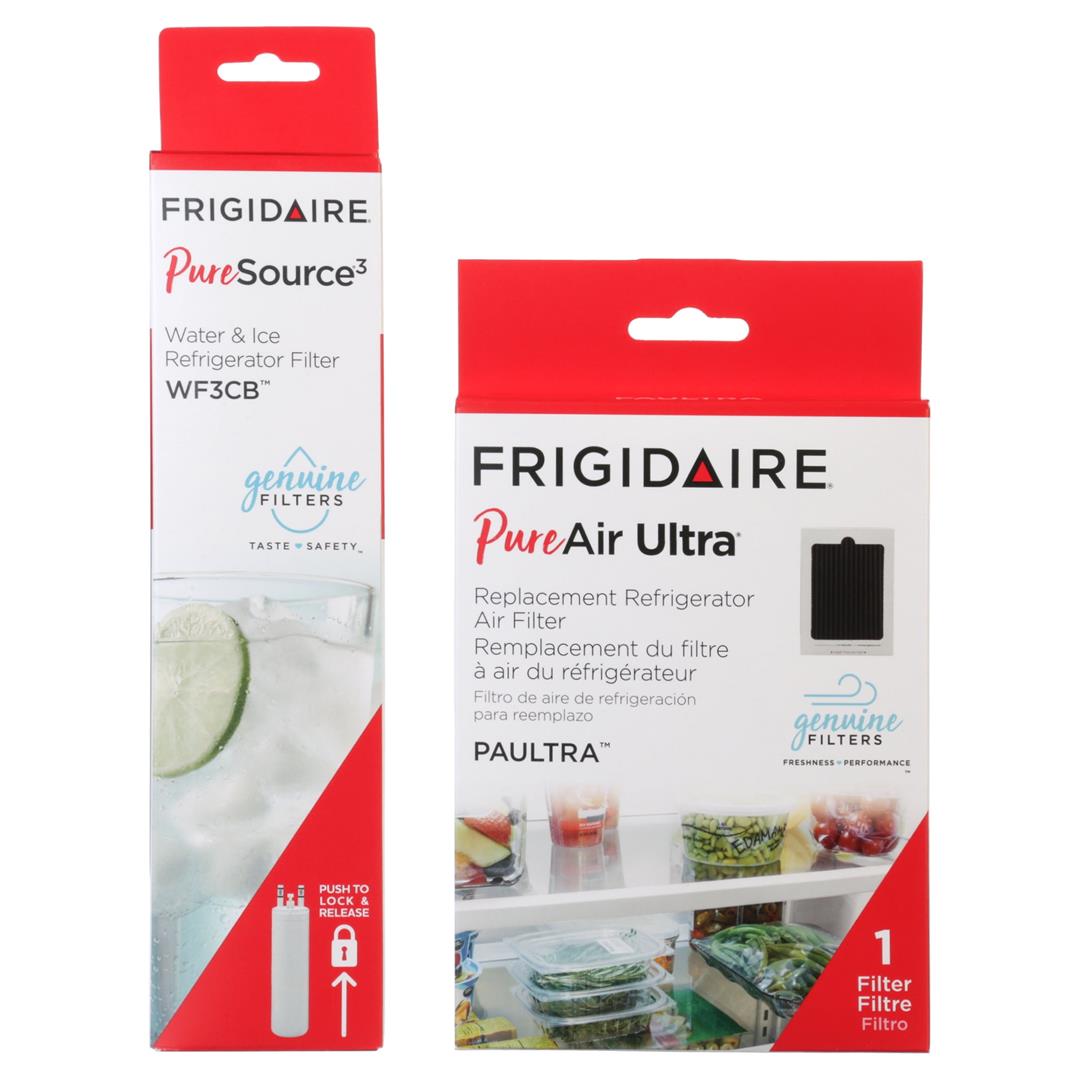 FRIGIDAIRE PureSource 3 & PureAir Ultra Water & Air Filter Combo Kit Includes Pure Source 3 water filter (WF3CB) and PureAir Ultra air filter (PAULTRA) WF3CB reduces up to 99% of contaminants for cleaner, safer drinking water PAULTRA absorbs undesirable smells using advanced carbon technology Designed to keep your fridge fresher for longer Look for the Genuine Filters seal on the package to ensure authenticity
