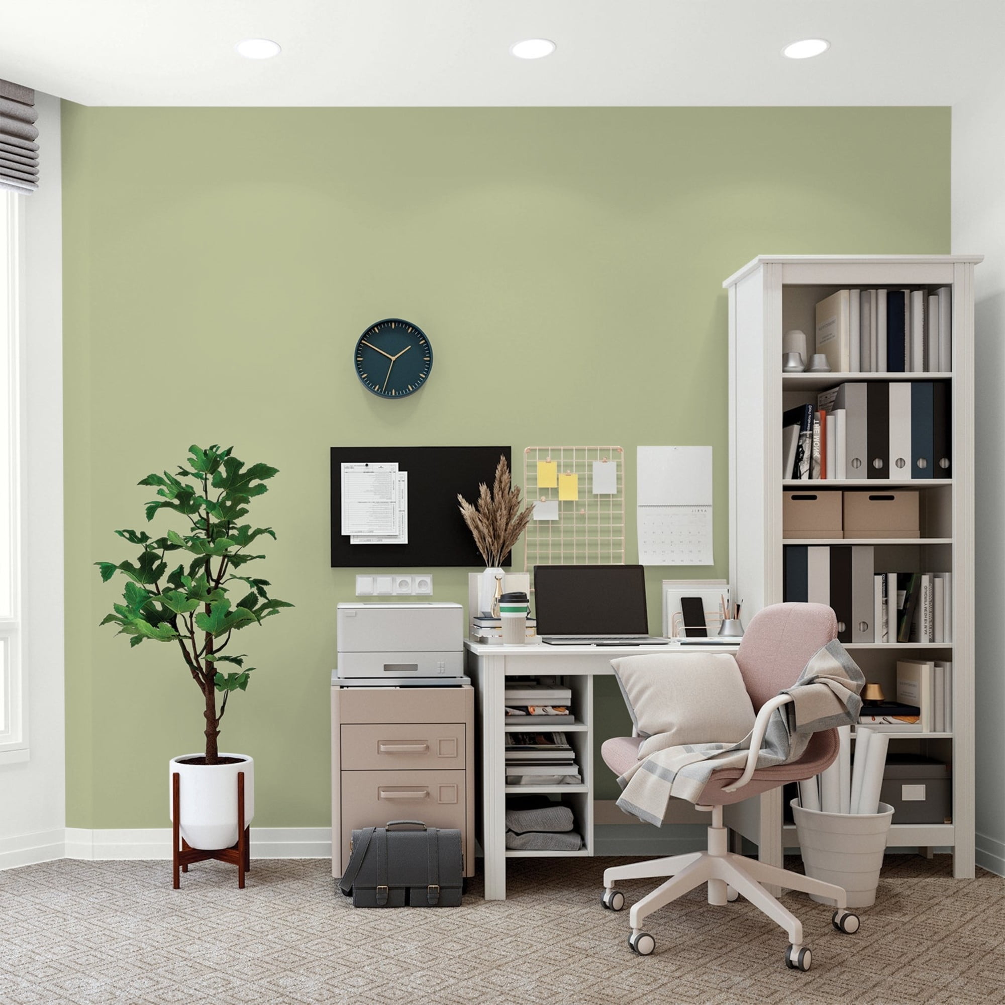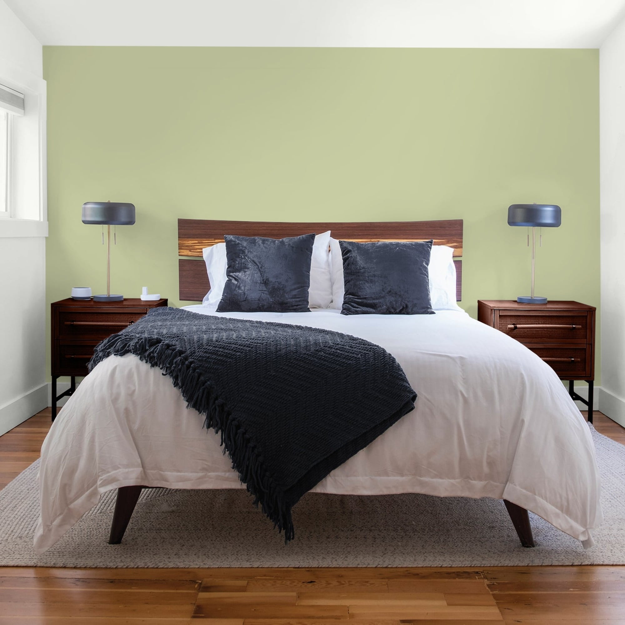 Glidden Fundamentals Interior Paint is a low-VOC, low-odor liquid paint that provides good hide, coverage, and washability. Recommended for use on properly prepared concrete/masonry, metal, drywall, plaster, and wood. Select the best sheen for your project. Flat is an ideal finish for ceilings, bedrooms and low traffic living areas. Eggshell is an ideal finish for walls in all living areas including kitchen, bathroom and living room. Semi-gloss is an ideal finish for trim and interior doors. Bahia Grass is a midtone, subdued, toad green and the undertone is ivy. This paint color is perfect for tropical-inspired spaces. Combine it with honeyed woods and golds.