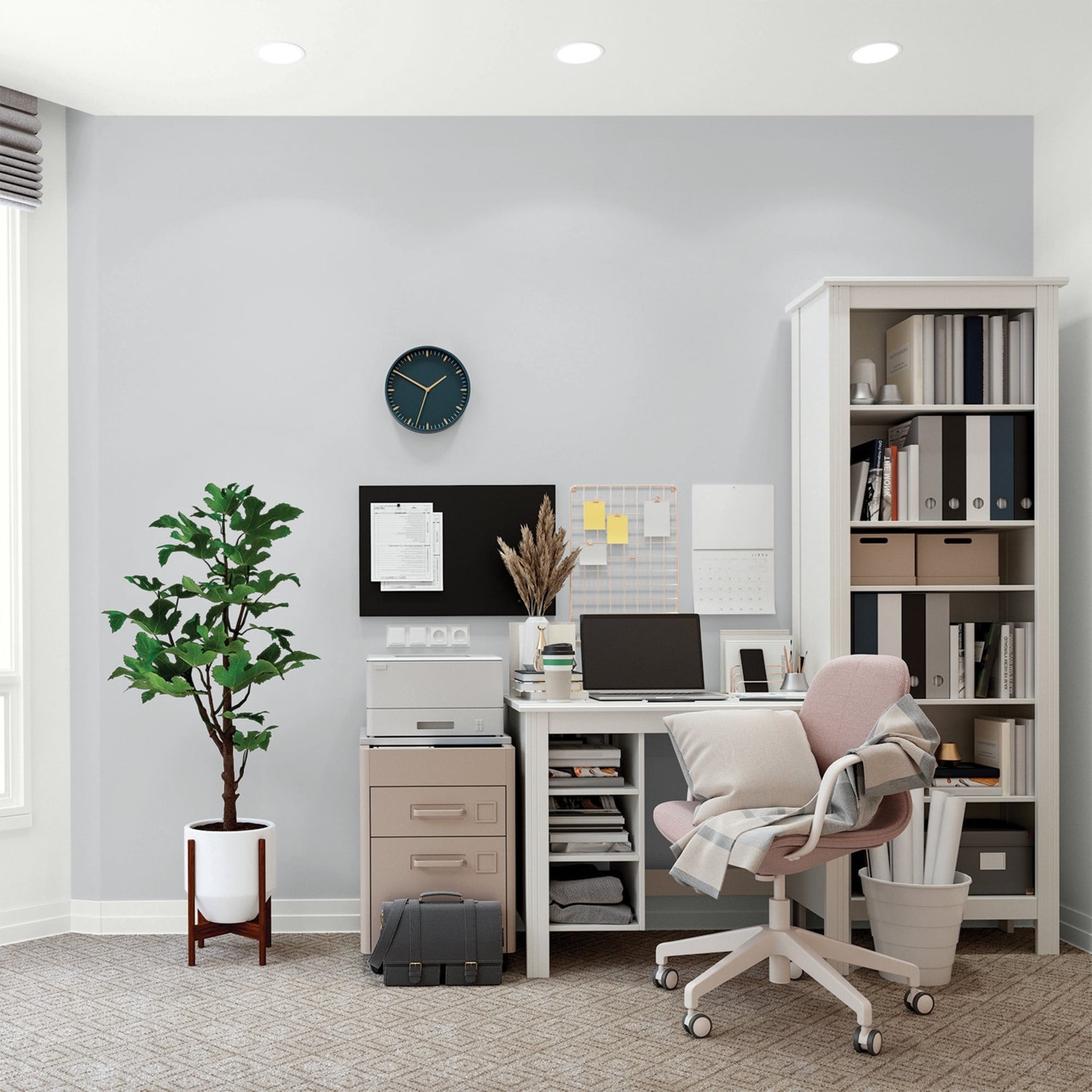 Glidden Fundamentals Interior Paint is a low-VOC, low-odor liquid paint that provides good hide, coverage, and washability. Recommended for use on properly prepared concrete/masonry, metal, drywall, plaster, and wood. Select the best sheen for your project. Flat is an ideal finish for ceilings, bedrooms and low traffic living areas. Eggshell is an ideal finish for walls in all living areas including kitchen, bathroom and living room. Semi-gloss is an ideal finish for trim and interior doors. Elemental is a light, cool, heather gray and the undertone is tinsel gold. This paint color is perfect for all interior walls or trim. Combine it with deeper-toned grays.