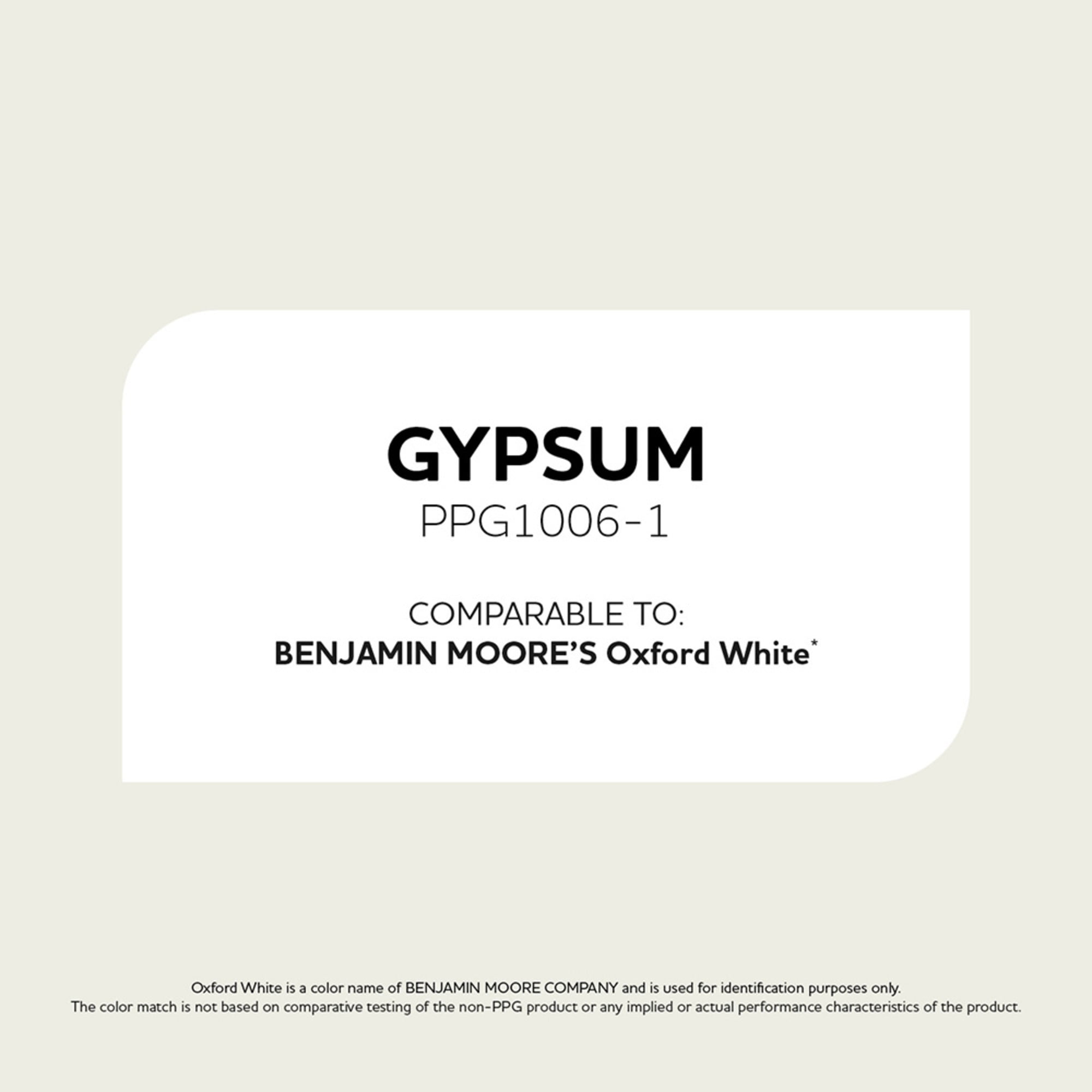 Glidden Fundamentals Interior Paint is a low-VOC, low-odor liquid paint that provides good hide, coverage, and washability. Recommended for use on properly prepared concrete/masonry, metal, drywall, plaster, and wood. Select the best sheen for your project. Flat is an ideal finish for ceilings, bedrooms and low traffic living areas. Eggshell is an ideal finish for walls in all living areas including kitchen, bathroom and living room. Semi-gloss is an ideal finish for trim and interior doors. Gypsum is a pale, gray, veiled white and the undertone is red. This paint color makes any room look perfect. Combine it with dark shades of green.