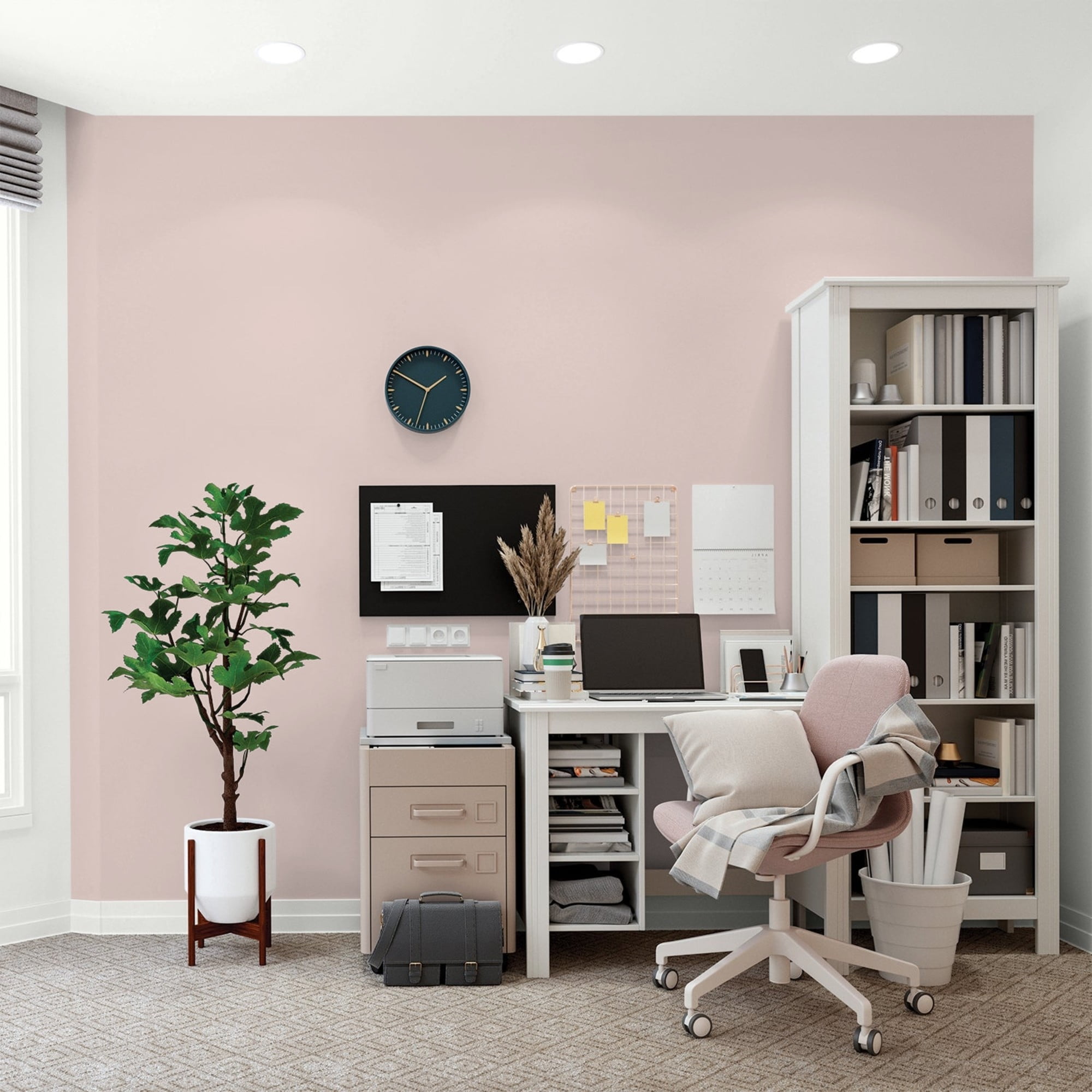 Glidden Fundamentals Interior Paint is a low-VOC, low-odor liquid paint that provides good hide, coverage, and washability. Recommended for use on properly prepared concrete/masonry, metal, drywall, plaster, and wood. Select the best sheen for your project. Flat is an ideal finish for ceilings, bedrooms and low traffic living areas. Eggshell is an ideal finish for walls in all living areas including kitchen, bathroom and living room. Semi-gloss is an ideal finish for trim and interior doors. Kangaroo Paw is a soft, neutral, millennial pink and the undertone is silvery. This paint color is perfect for a family room, living space or the exterior of your home. Combine it with off-white trim.