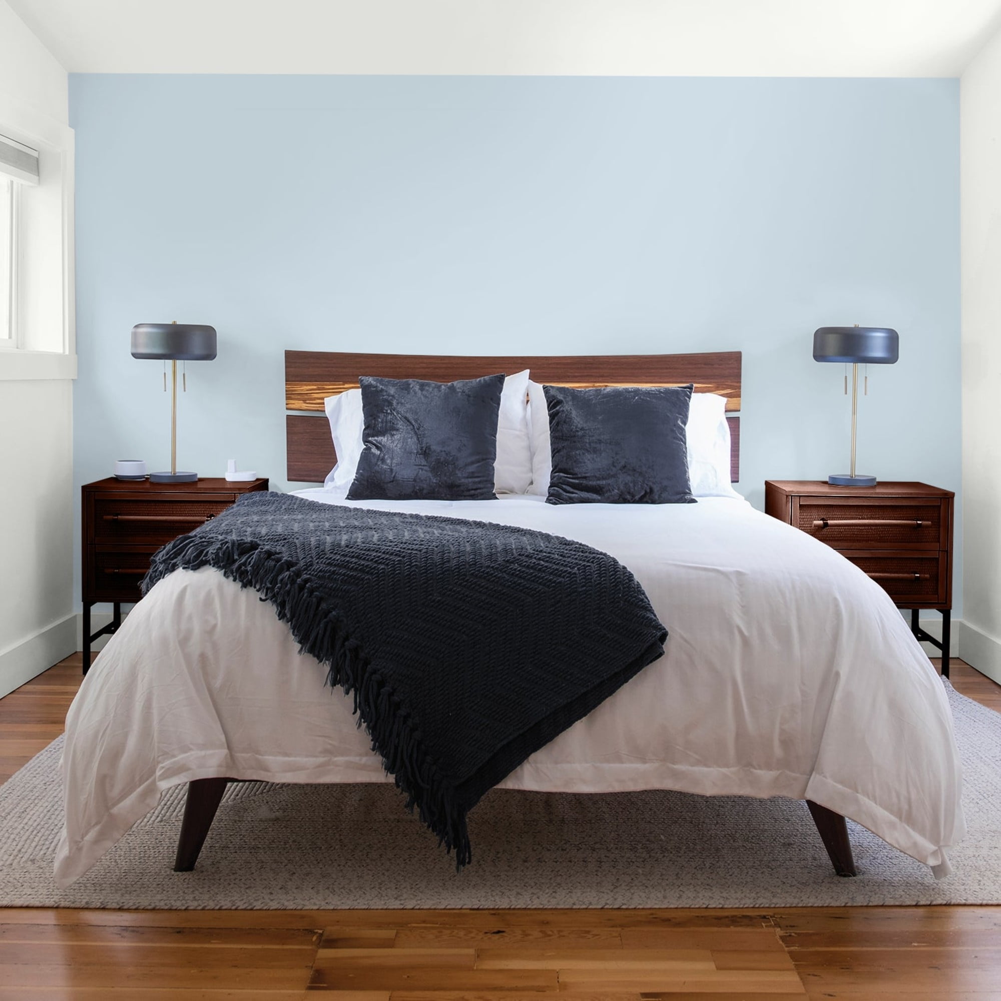 Glidden Fundamentals Interior Paint is a low-VOC, low-odor liquid paint that provides good hide, coverage, and washability. Recommended for use on properly prepared concrete/masonry, metal, drywall, plaster, and wood. Select the best sheen for your project. Flat is an ideal finish for ceilings, bedrooms and low traffic living areas. Eggshell is an ideal finish for walls in all living areas including kitchen, bathroom and living room. Semi-gloss is an ideal finish for trim and interior doors. Keepsakes is a light, gray, baby blue and the undertone is indigo. This paint color is perfect for a kitchen or to create a spa-like bedroom or bathroom. Combine it with white trim for fresh appeal.