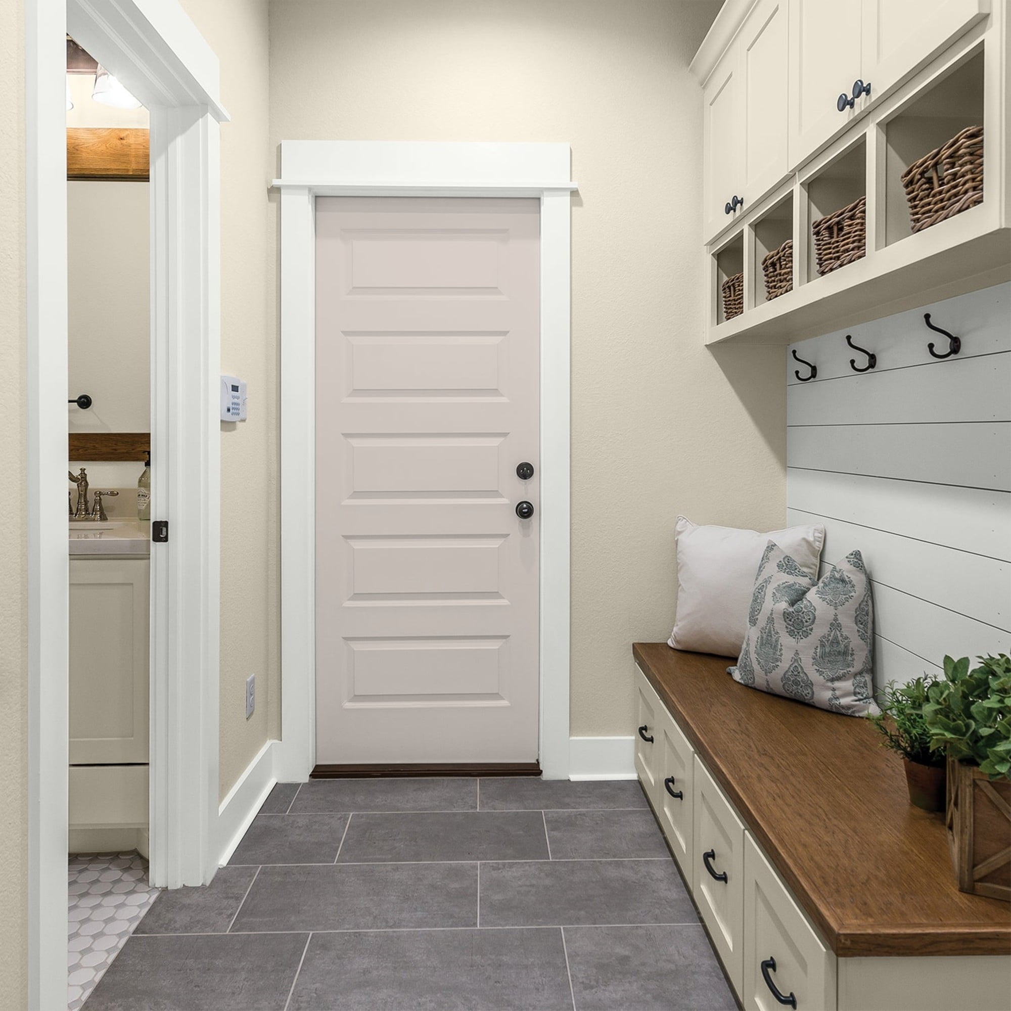 Glidden Fundamentals Interior Paint is a low-VOC, low-odor liquid paint that provides good hide, coverage, and washability. Recommended for use on properly prepared concrete/masonry, metal, drywall, plaster, and wood. Select the best sheen for your project. Flat is an ideal finish for ceilings, bedrooms and low traffic living areas. Eggshell is an ideal finish for walls in all living areas including kitchen, bathroom and living room. Semi-gloss is an ideal finish for trim and interior doors. My Alibi is a light, gray, dusty greige and the undertone is blush. This paint color is perfect for a fresh, warm accent or ceiling. Combine it with white accents.