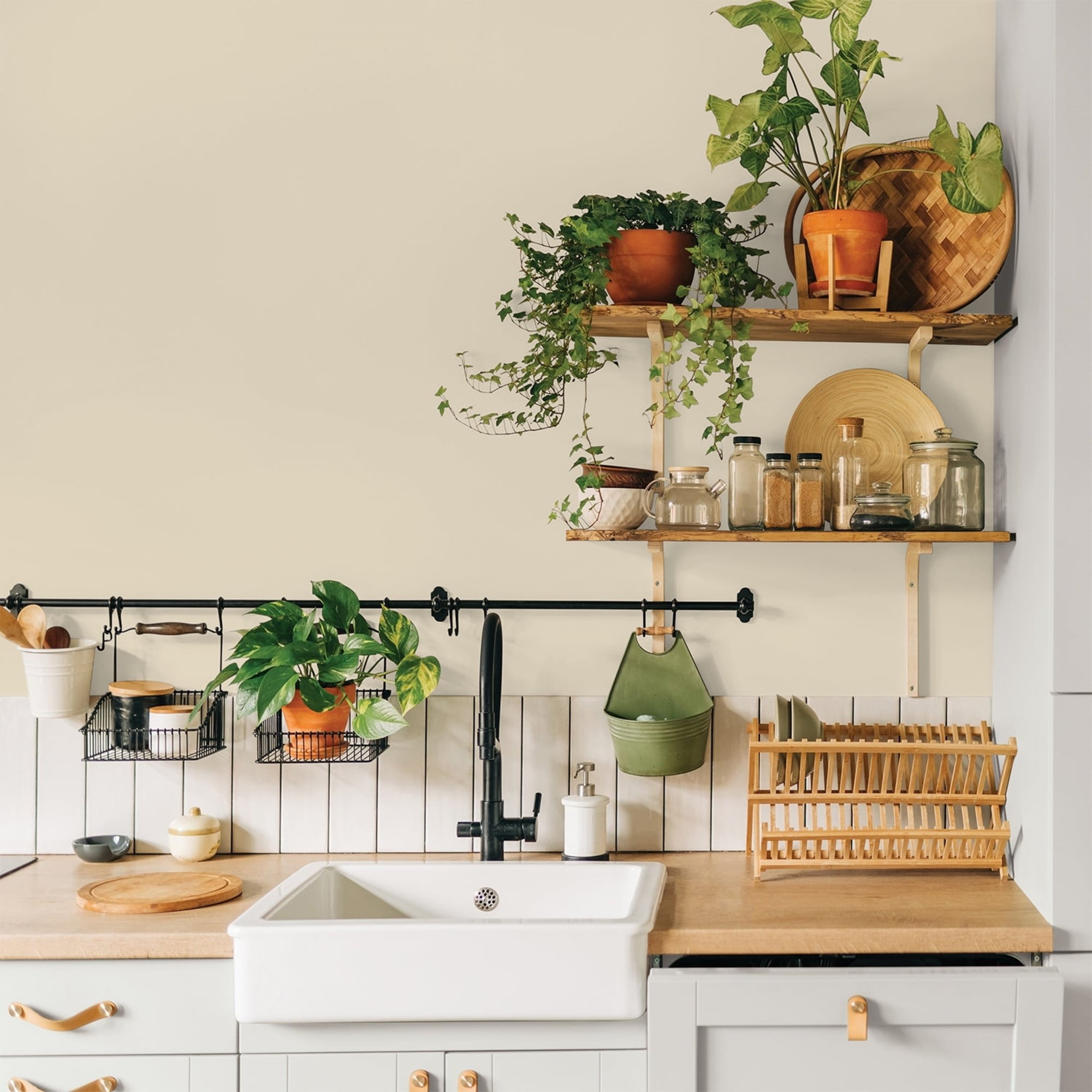 Glidden Fundamentals Interior Paint is a low-VOC, low-odor liquid paint that provides good hide, coverage, and washability. Recommended for use on properly prepared concrete/masonry, metal, drywall, plaster, and wood. Select the best sheen for your project. Flat is an ideal finish for ceilings, bedrooms and low traffic living areas. Eggshell is an ideal finish for walls in all living areas including kitchen, bathroom and living room. Semi-gloss is an ideal finish for trim and interior doors. Toasted Almond is a soft, neutral, caramel white and the undertone is bronze. This paint color gives any interior a perfect look. Combine it with natural woods to add a bit of texture to your room.