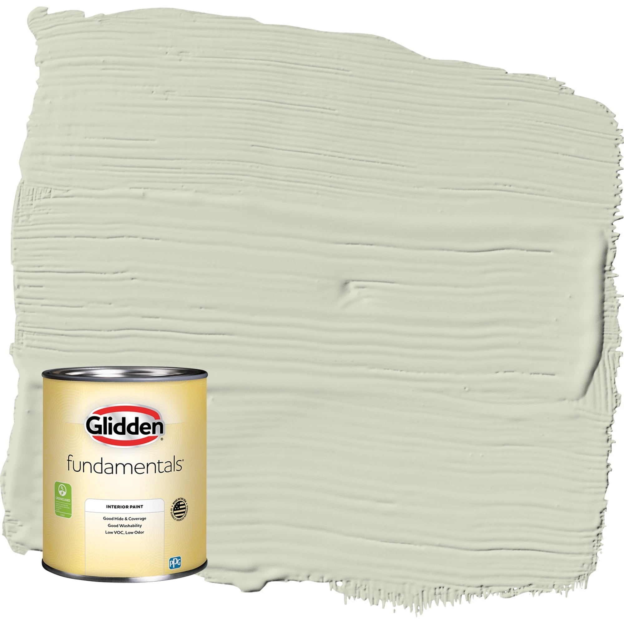 Glidden Fundamentals Interior Paint is a low-VOC, low-odor liquid paint that provides good hide, coverage, and washability. Recommended for use on properly prepared concrete/masonry, metal, drywall, plaster, and wood. Select the best sheen for your project. Flat is an ideal finish for ceilings, bedrooms and low traffic living areas. Eggshell is an ideal finish for walls in all living areas including kitchen, bathroom and living room. Semi-gloss is an ideal finish for trim and interior doors. White Sage is a light, neutral, spring green and the undertone is pistachio. This paint color is perfect for a yoga, meditation, or craft room. Combine it with off-white trim and deeper olive.
