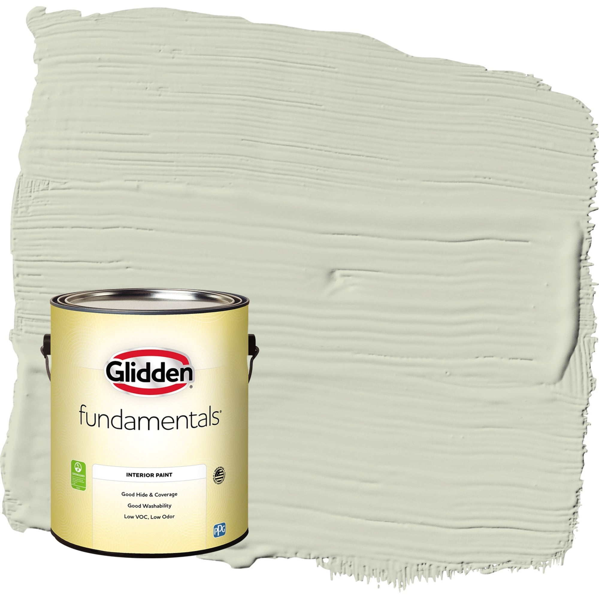 Glidden Fundamentals Interior Paint is a low-VOC, low-odor liquid paint that provides good hide, coverage, and washability. Recommended for use on properly prepared concrete/masonry, metal, drywall, plaster, and wood. Select the best sheen for your project. Flat is an ideal finish for ceilings, bedrooms and low traffic living areas. Eggshell is an ideal finish for walls in all living areas including kitchen, bathroom and living room. Semi-gloss is an ideal finish for trim and interior doors. White Sage is a light, neutral, spring green and the undertone is pistachio. This paint color is perfect for a yoga, meditation, or craft room. Combine it with off-white trim and deeper olive.