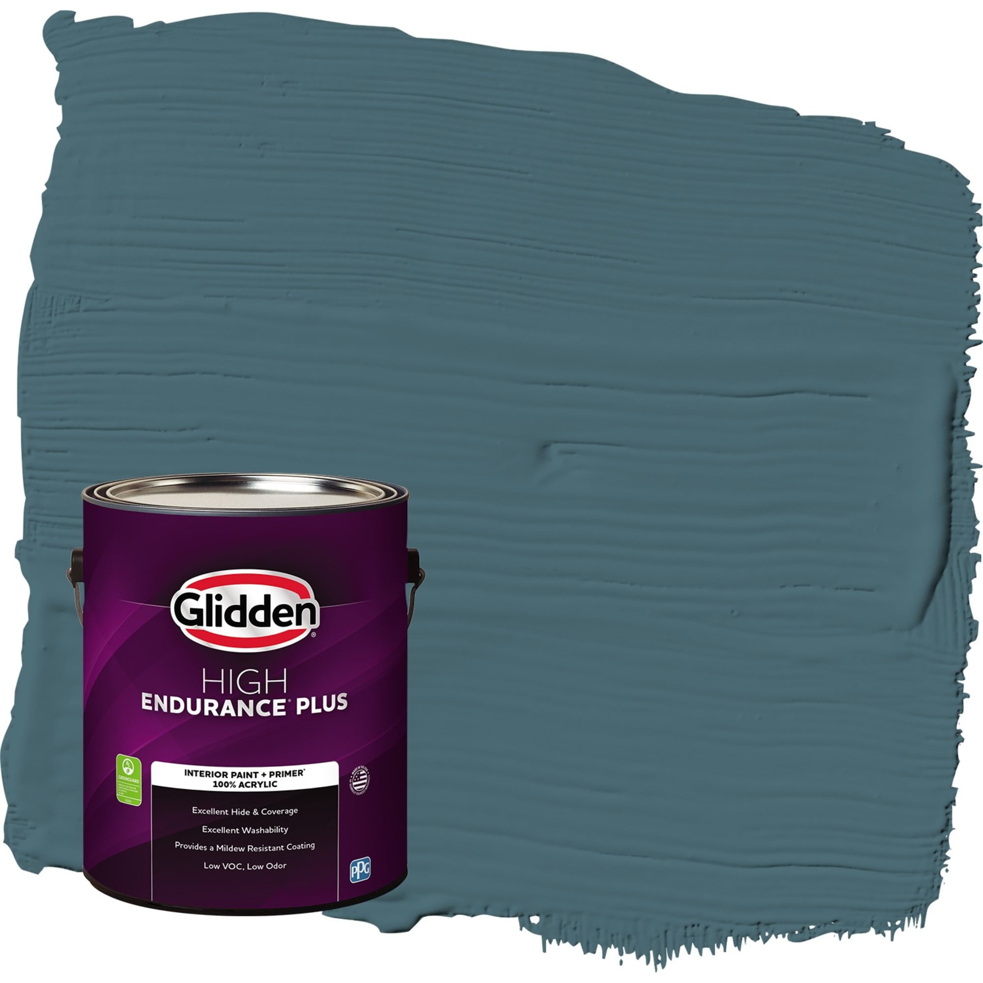 Glidden High Endurance Plus Interior Paint + Primer is a high quality, interior 100% acrylic paint and primer in one, offered at an exceptional price. This low odor, Zero VOC* paint provides outstanding hide and coverage and is highly scrubbable, washable and stain resistant, making it a great choice for any interior paint project. *Colorants added to this base paint may increase VOC level significantly depending on color choices. Azalea Leaf is a deep, subdued, Caribbean blue and the undertone is turquoise. This color is perfect to paint the kitchen cupboards. Combine it with soft white.
