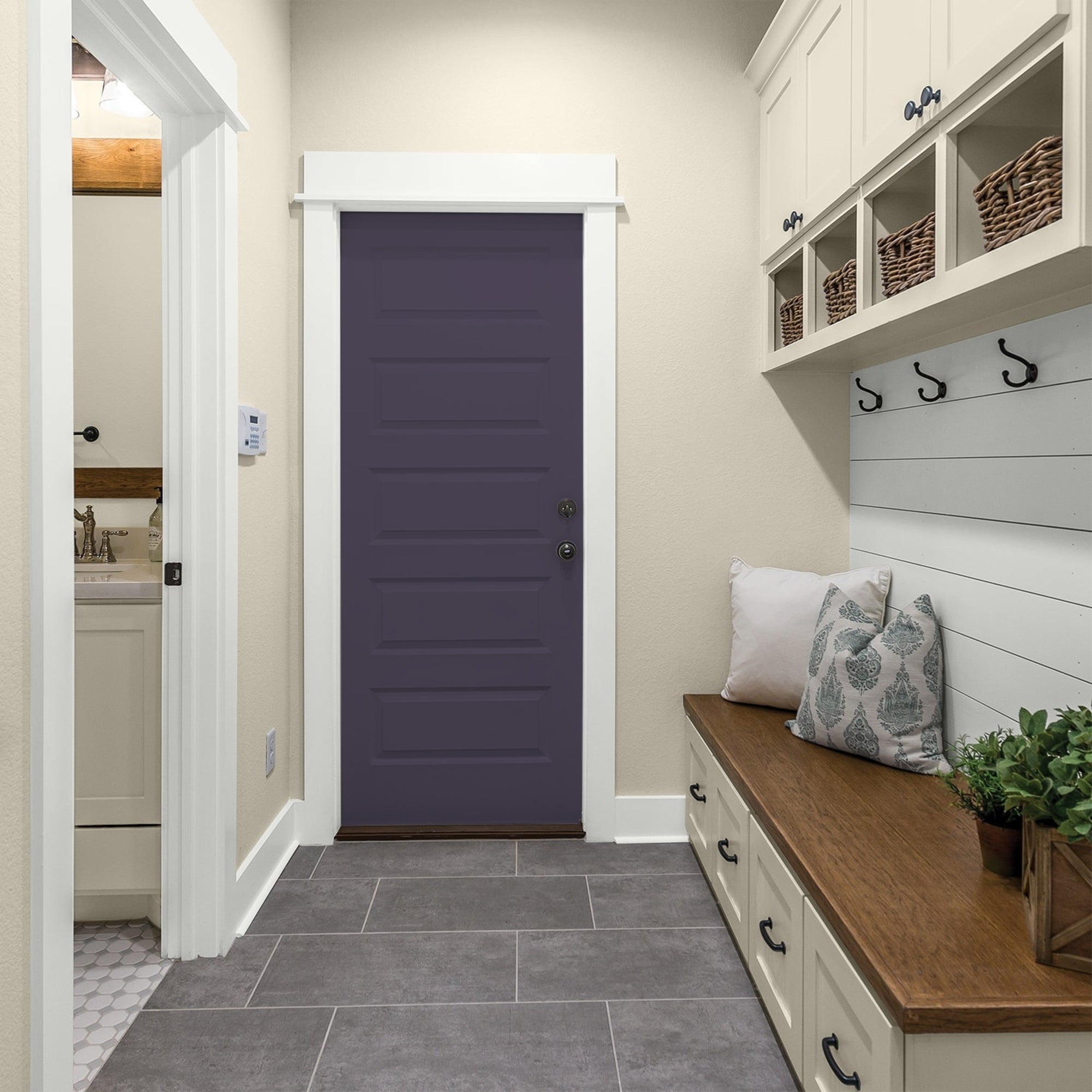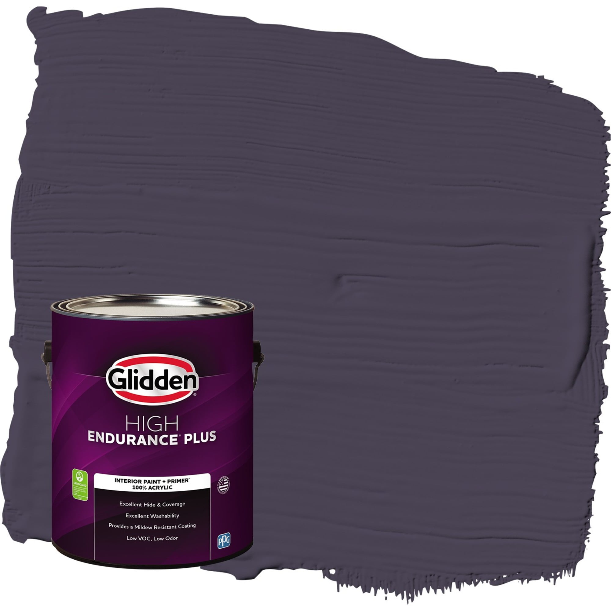 Glidden High Endurance Plus Interior Paint + Primer is a high quality, interior 100% acrylic paint and primer in one, offered at an exceptional price. This low odor, Zero VOC* paint provides outstanding hide and coverage and is highly scrubbable, washable and stain resistant, making it a great choice for any interior paint project. *Colorants added to this base paint may increase VOC level significantly depending on color choices. Blackberry is a dark, neutral, heliotrope purple and the undertone is raspberry. This paint color is perfect for an accent in a choice bedroom. Combine it with gold tones.