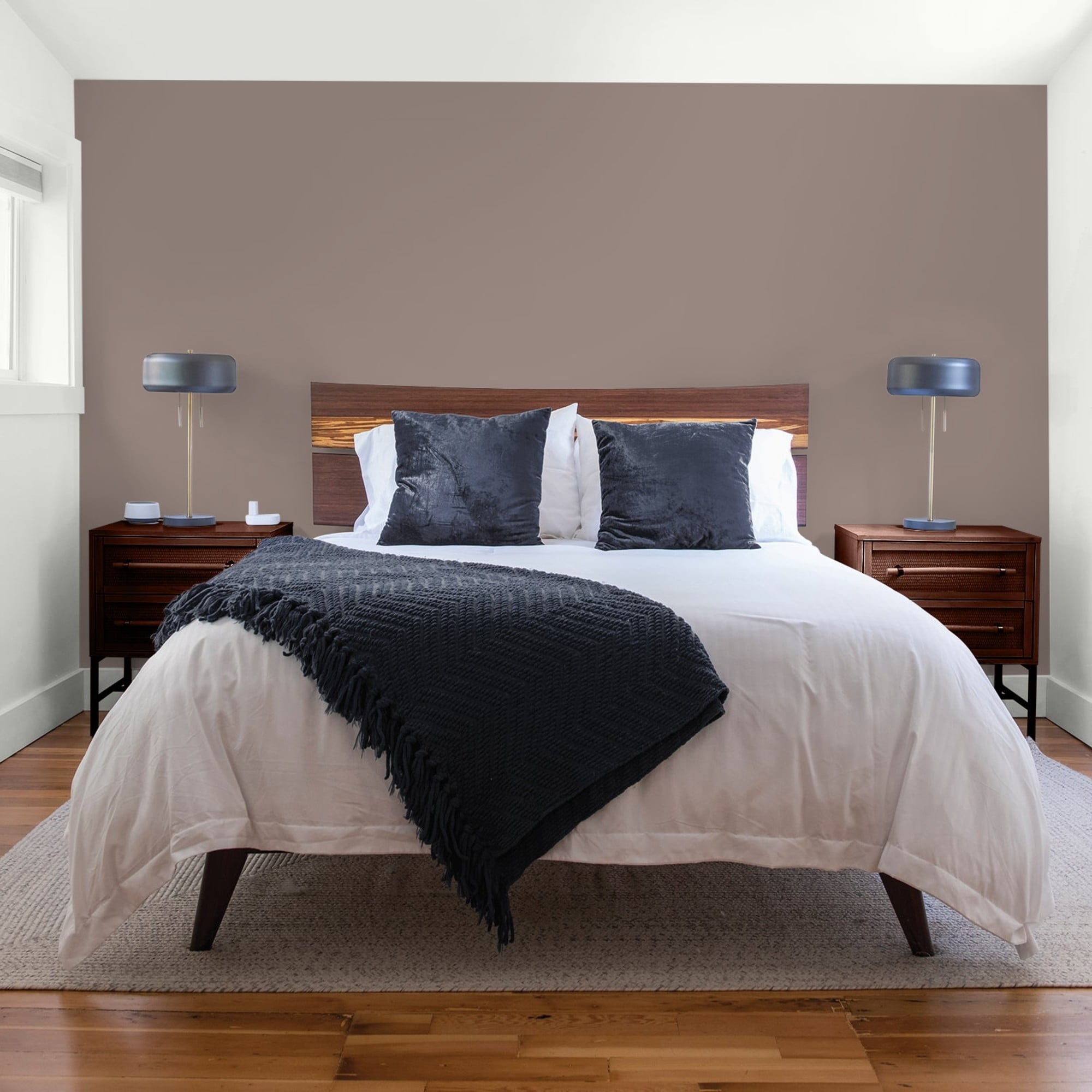 Glidden One Coat Interior is a super-premium quality paint that provides in one coat coverage*, an exceptional hide and stain blocking finish. This Low odor/ Low VOC formula has excellent scrubbability so it stand up to frequent cleanings. Ideal for use on properly prepared interior walls, ceilings, or trim composed of new or previously painted drywall, plaster, masonry, wood and metal. Available in Flat, Eggshell, Semi-Gloss Sheens. Cinnamon Toast is a saturated, gray, raspberry chocolate beige and the undertone is dusty rose. This color is perfect to paint the exterior of your home. Combine it with ripe, rich brown.