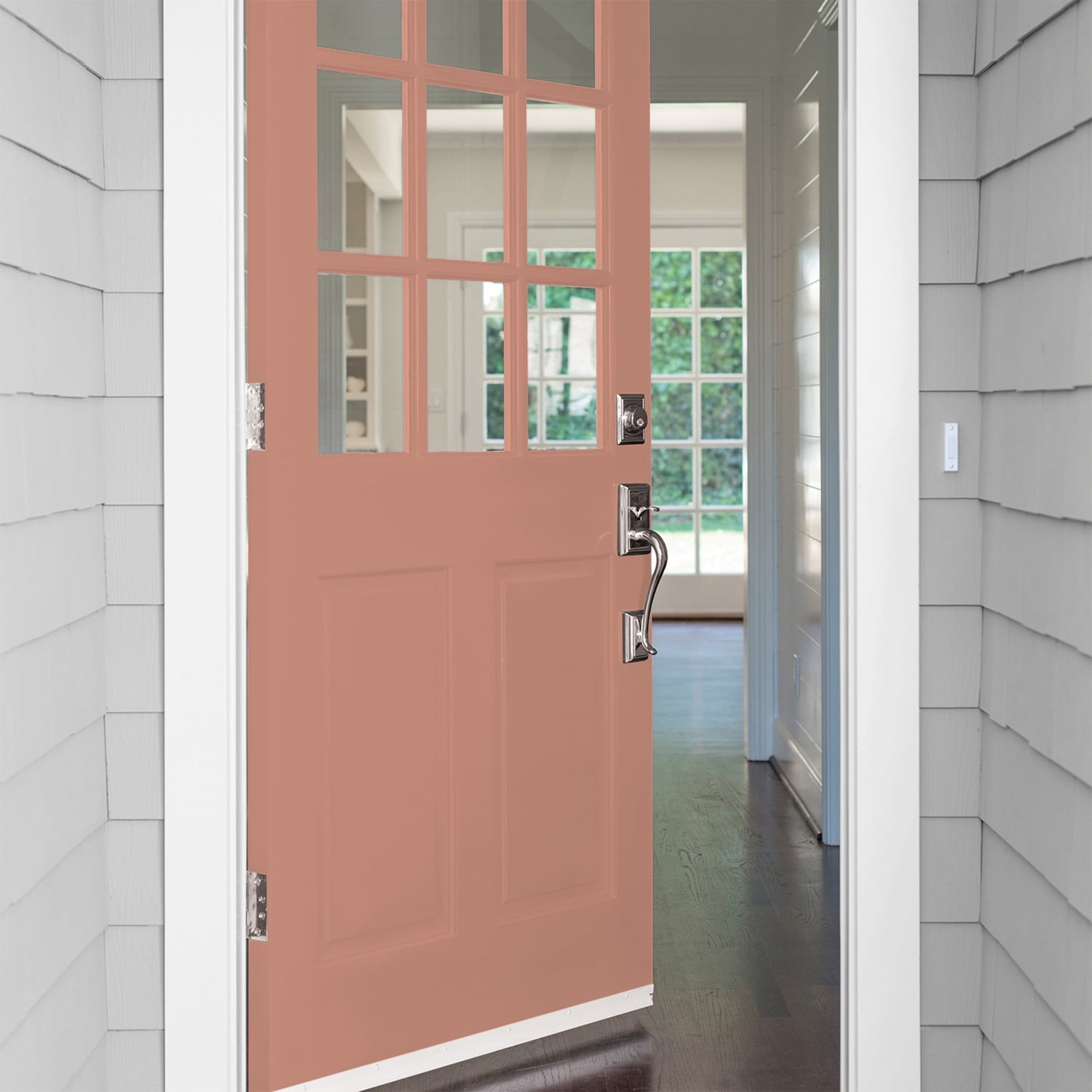 100% acrylic exterior paint & primer all-in-one Outstanding hiding and coverage up to 400 sq. ft. per gallon Excellent fading, cracking and peeling resistance Excellent dirt resistance Low VOC Application down to 35 F; Dry time 30-60 minutes, Recoat 2-4 hours Available in a hand selected palette of our most popular colors