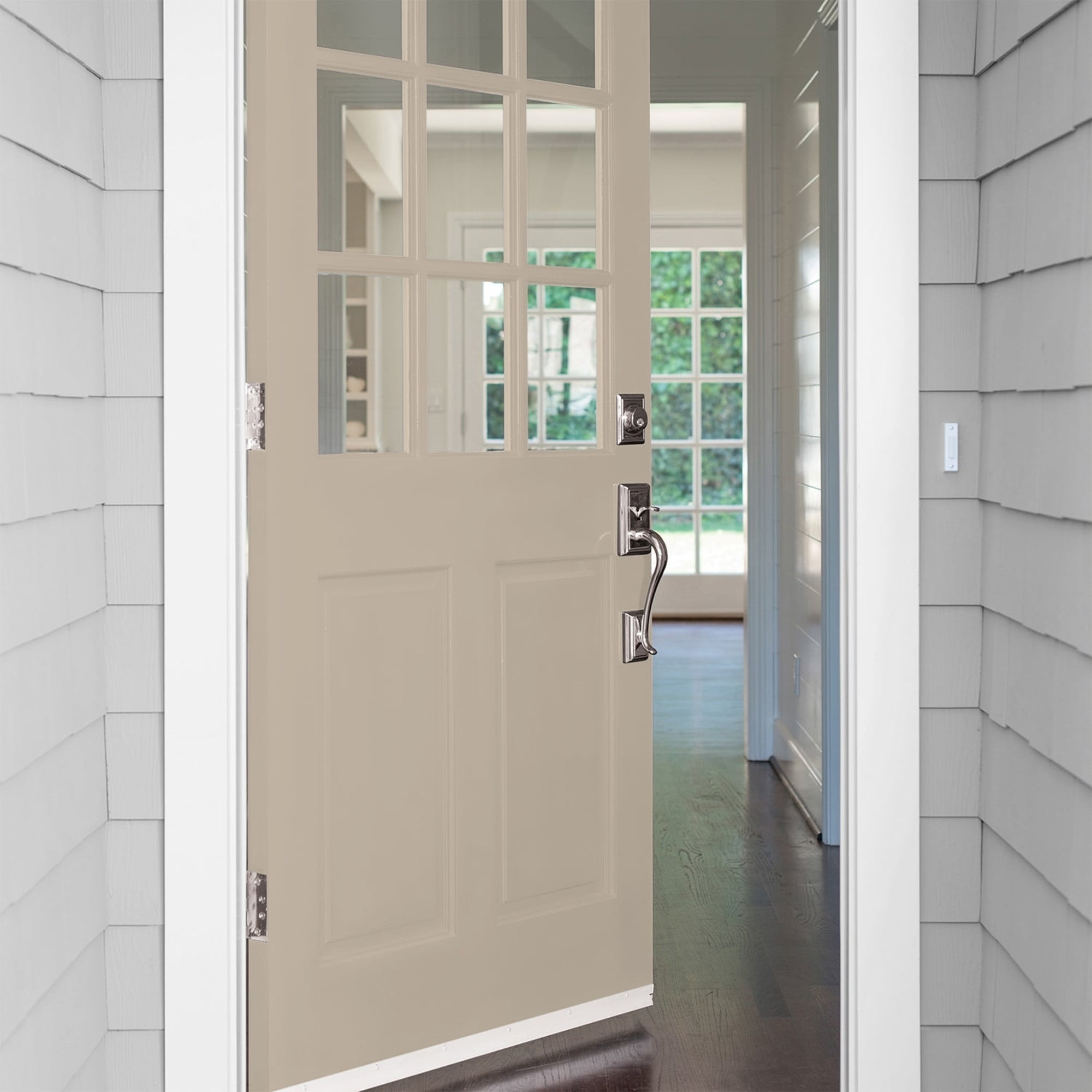 Glidden One Coat Exterior Paint is a super-premium quality paint that provides in one coat coverage* an enhance UV protection finish. This 100% acrylic paint provides a mildew resistant coating, excellent hide and adhesion, and exceptional resistance to fading, cracking & peeling on many exterior projects including properly prepared, exterior wood, brick, masonry, concrete, weathered aluminum, and primed metal substrates. Available in Flat, Satin, Semi-Gloss Sheens. Discover is a soft, gray, peachy beige and the undertone is brown. This paint color is perfect for any interior selections. Combine it with deeper browns and blacks for contrast.