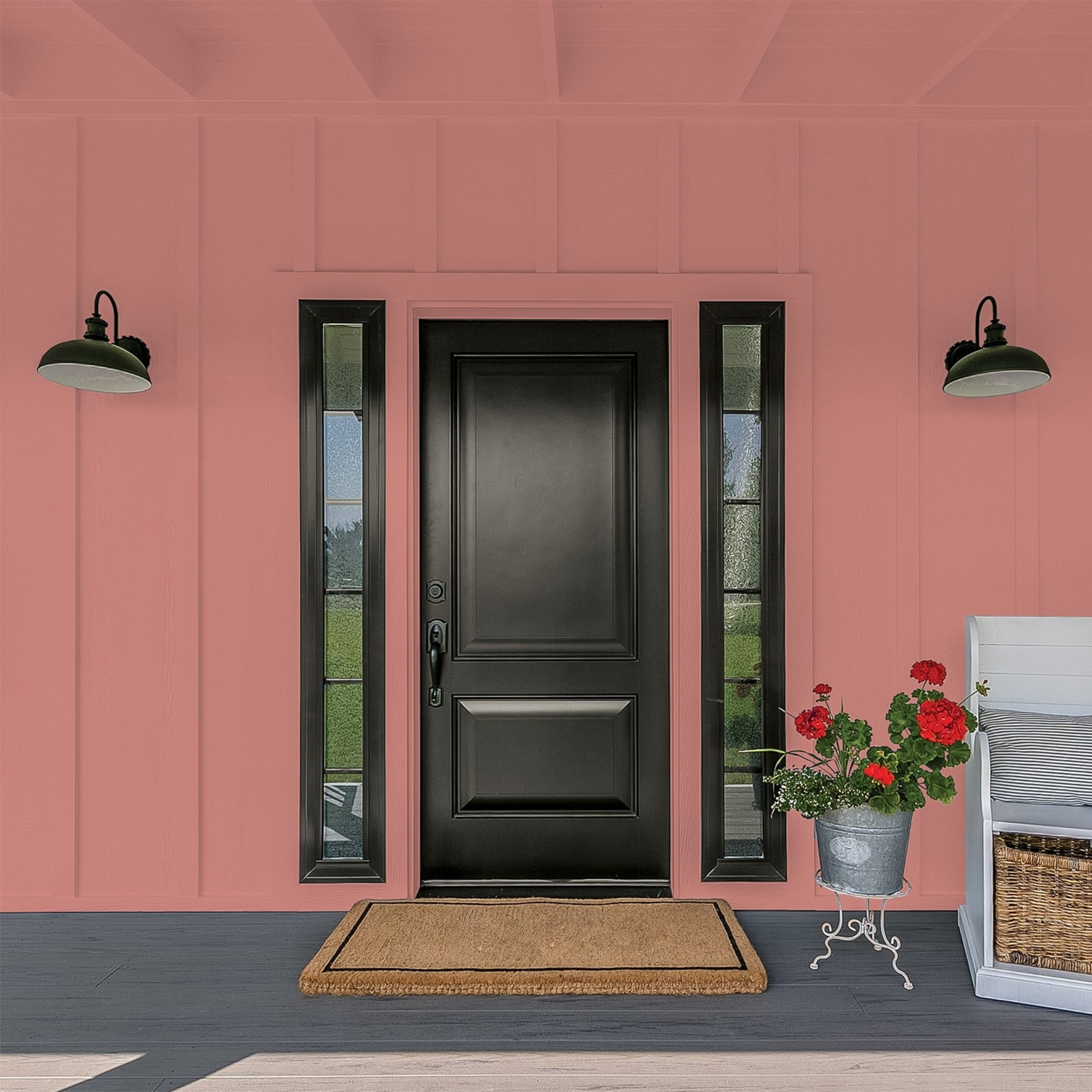 Glidden One Coat Exterior Paint is a super-premium quality paint that provides in one coat coverage* an enhance UV protection finish. This 100% acrylic paint provides a mildew resistant coating, excellent hide and adhesion, and exceptional resistance to fading, cracking & peeling on many exterior projects including properly prepared, exterior wood, brick, masonry, concrete, weathered aluminum, and primed metal substrates. Available in Flat, Satin, Semi-Gloss Sheens. Earth Rose is a saturated, subdued, Merlot pink and the undertone is oaky. This paint color is perfect for a grounding and soft bedroom or cinema room. Combine it with dark woods and golden tints to add dimension.