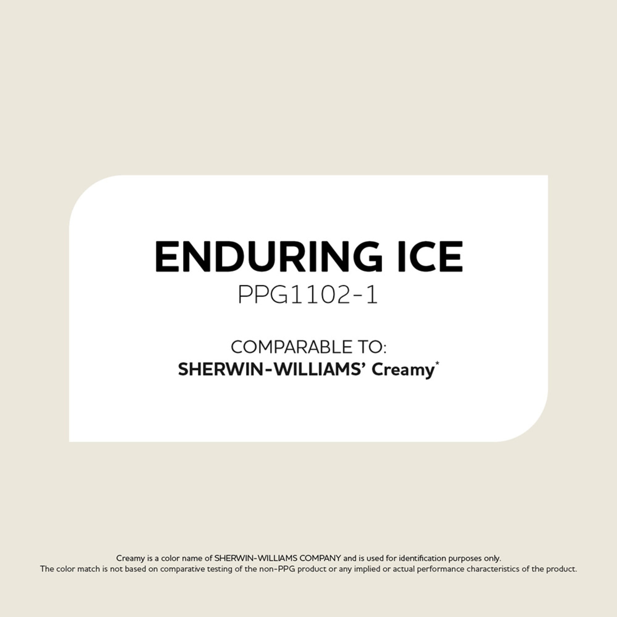 Glidden One Coat Exterior Paint is a super-premium quality paint that provides in one coat coverage* an enhance UV protection finish. This 100% acrylic paint provides a mildew resistant coating, excellent hide and adhesion, and exceptional resistance to fading, cracking & peeling on many exterior projects including properly prepared, exterior wood, brick, masonry, concrete, weathered aluminum, and primed metal substrates. Available in Flat, Satin, Semi-Gloss Sheens. Enduring Ice is a pale, neutral, budding off-white and the undertone is sage. This paint color is perfect for all interior walls. Combine it with white trim and soft yellow.
