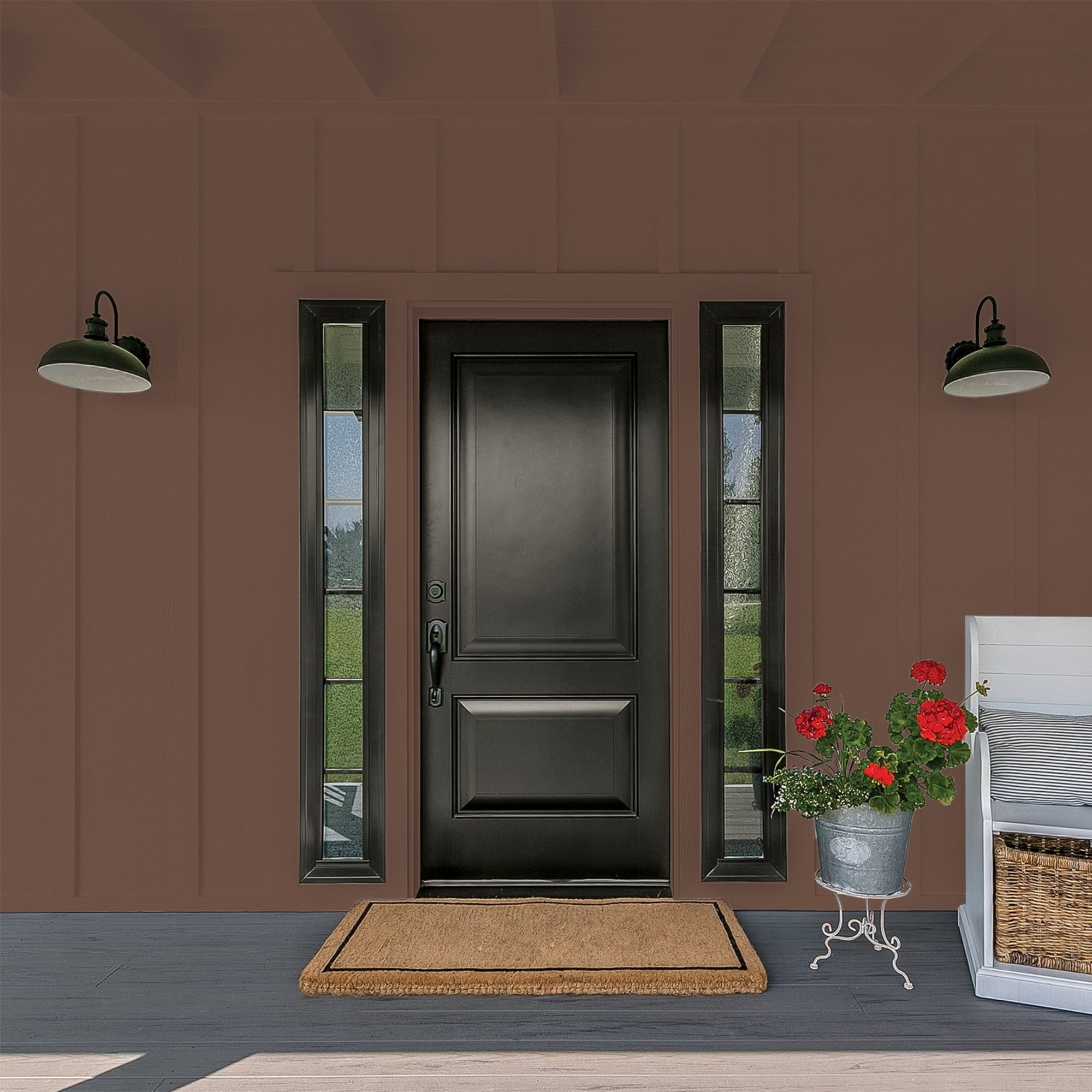 Glidden One Coat Exterior Paint is a super-premium quality paint that provides in one coat coverage* an enhance UV protection finish. This 100% acrylic paint provides a mildew resistant coating, excellent hide and adhesion, and exceptional resistance to fading, cracking & peeling on many exterior projects including properly prepared, exterior wood, brick, masonry, concrete, weathered aluminum, and primed metal substrates. Available in Flat, Satin, Semi-Gloss Sheens. Fudge is a dark, neutral, ginger brown and the undertone is persimmon orange. This paint color is perfect for an accent wall or trim. Combine it with subdued blues and sage greens.