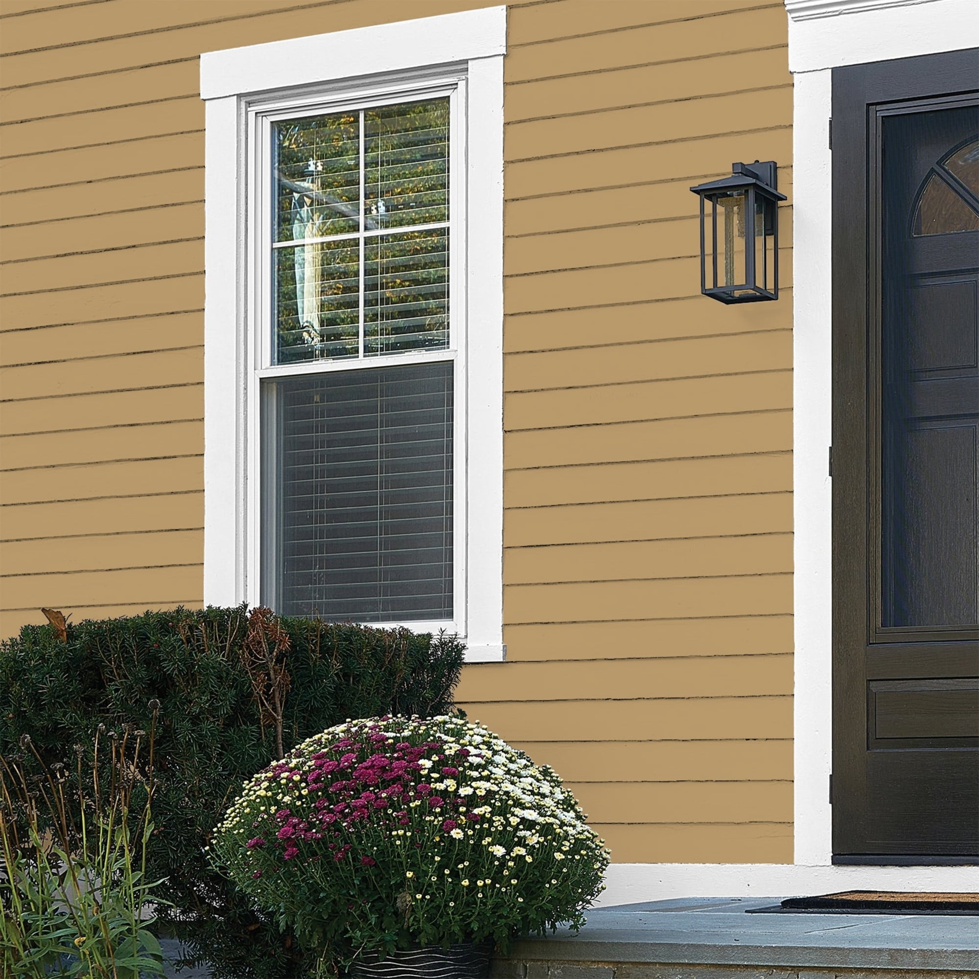 Glidden One Coat Exterior Paint is a super-premium quality paint that provides in one coat coverage* an enhance UV protection finish. This 100% acrylic paint provides a mildew resistant coating, excellent hide and adhesion, and exceptional resistance to fading, cracking & peeling on many exterior projects including properly prepared, exterior wood, brick, masonry, concrete, weathered aluminum, and primed metal substrates. Available in Flat, Satin, Semi-Gloss Sheens. Golden Granola is a saturated, shaded, baked yellow and the undertone is sandy. This paint color is perfect for a stately dining area. Combine it with white trim and darker furniture.