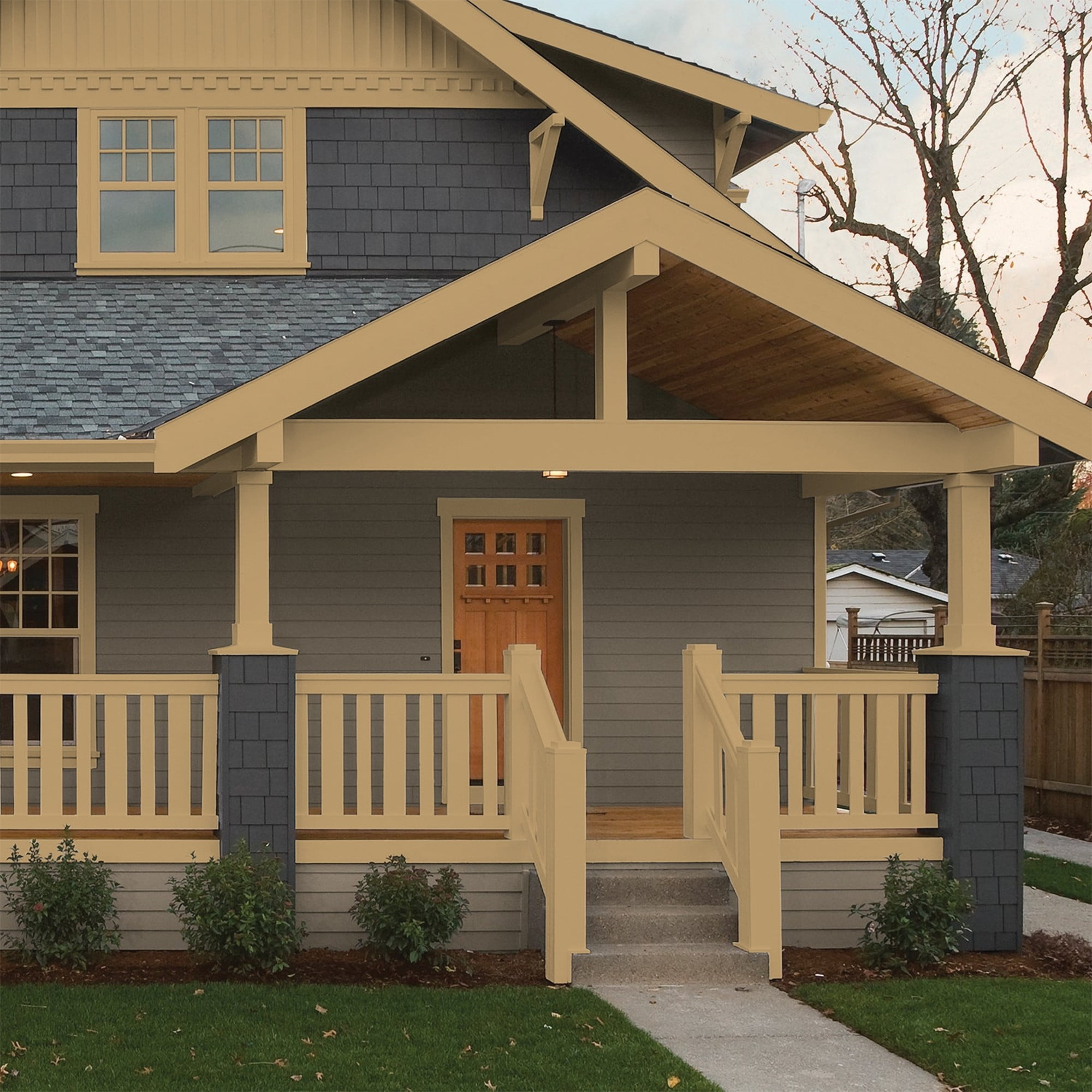 Glidden One Coat Exterior Paint is a super-premium quality paint that provides in one coat coverage* an enhance UV protection finish. This 100% acrylic paint provides a mildew resistant coating, excellent hide and adhesion, and exceptional resistance to fading, cracking & peeling on many exterior projects including properly prepared, exterior wood, brick, masonry, concrete, weathered aluminum, and primed metal substrates. Available in Flat, Satin, Semi-Gloss Sheens. Golden Granola is a saturated, shaded, baked yellow and the undertone is sandy. This paint color is perfect for a stately dining area. Combine it with white trim and darker furniture.