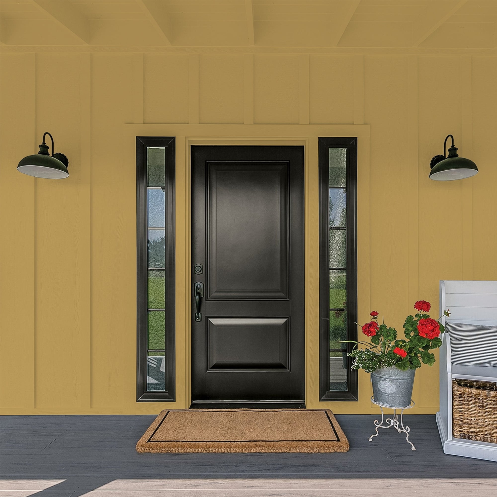 Glidden One Coat Exterior Paint is a super-premium quality paint that provides in one coat coverage* an enhance UV protection finish. This 100% acrylic paint provides a mildew resistant coating, excellent hide and adhesion, and exceptional resistance to fading, cracking & peeling on many exterior projects including properly prepared, exterior wood, brick, masonry, concrete, weathered aluminum, and primed metal substrates. Available in Flat, Satin, Semi-Gloss Sheens. Graceful Gazelle is a dark, subdued, tree branch yellow and the undertone is earthy. This color is great to paint an accent wall. Combine it with honeyed woods and off-white trim for a completed look.