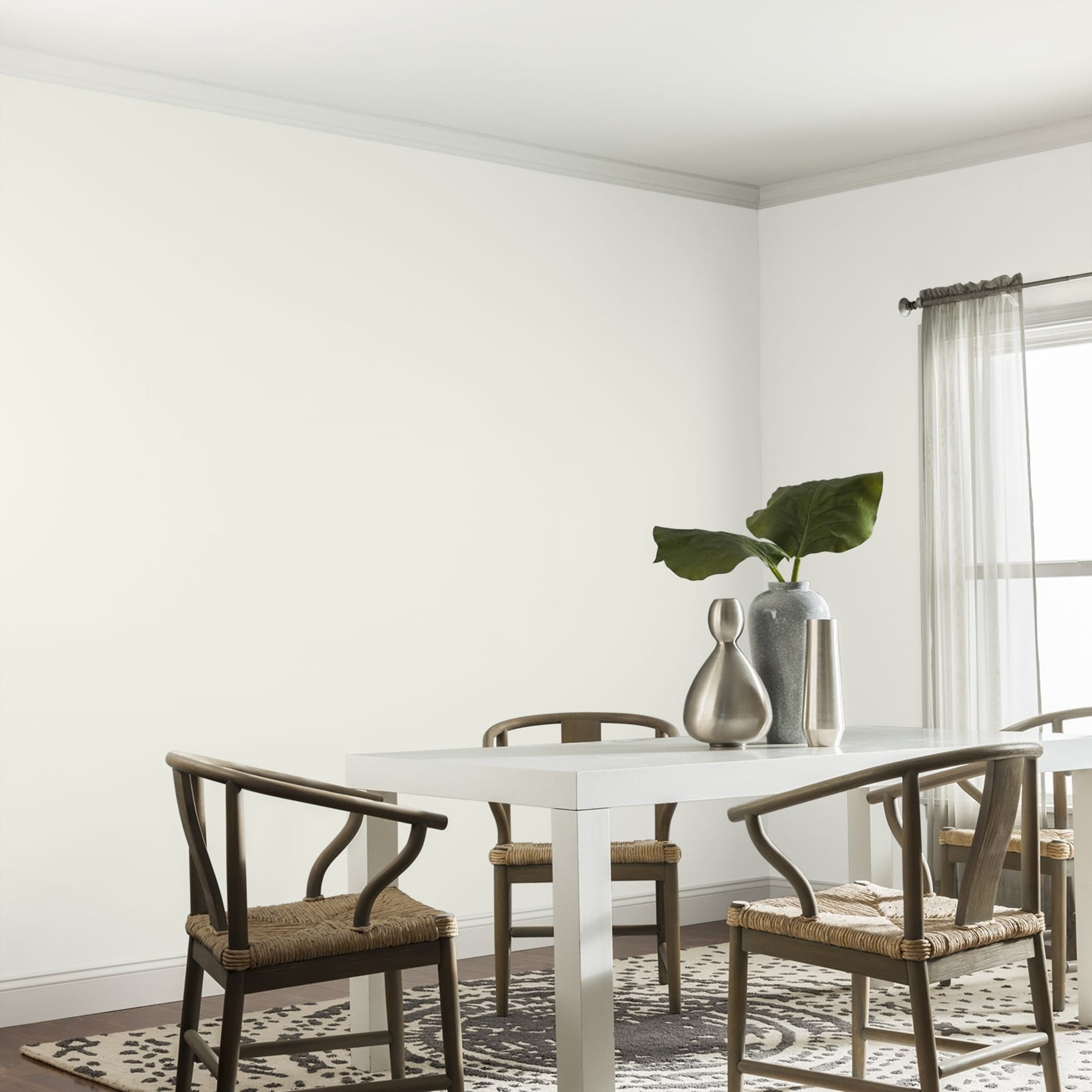 Glidden One Coat Interior is a super-premium quality paint that provides in one coat coverage*, an exceptional hide and stain blocking finish. This Low odor/ Low VOC formula has excellent scrubbability so it stand up to frequent cleanings. Ideal for use on properly prepared interior walls, ceilings, or trim composed of new or previously painted drywall, plaster, masonry, wood and metal. Available in Flat, Eggshell, Semi-Gloss Sheens. Gypsum is a pale, gray, veiled white and the undertone is red. This paint color makes any room look perfect. Combine it with dark shades of green.