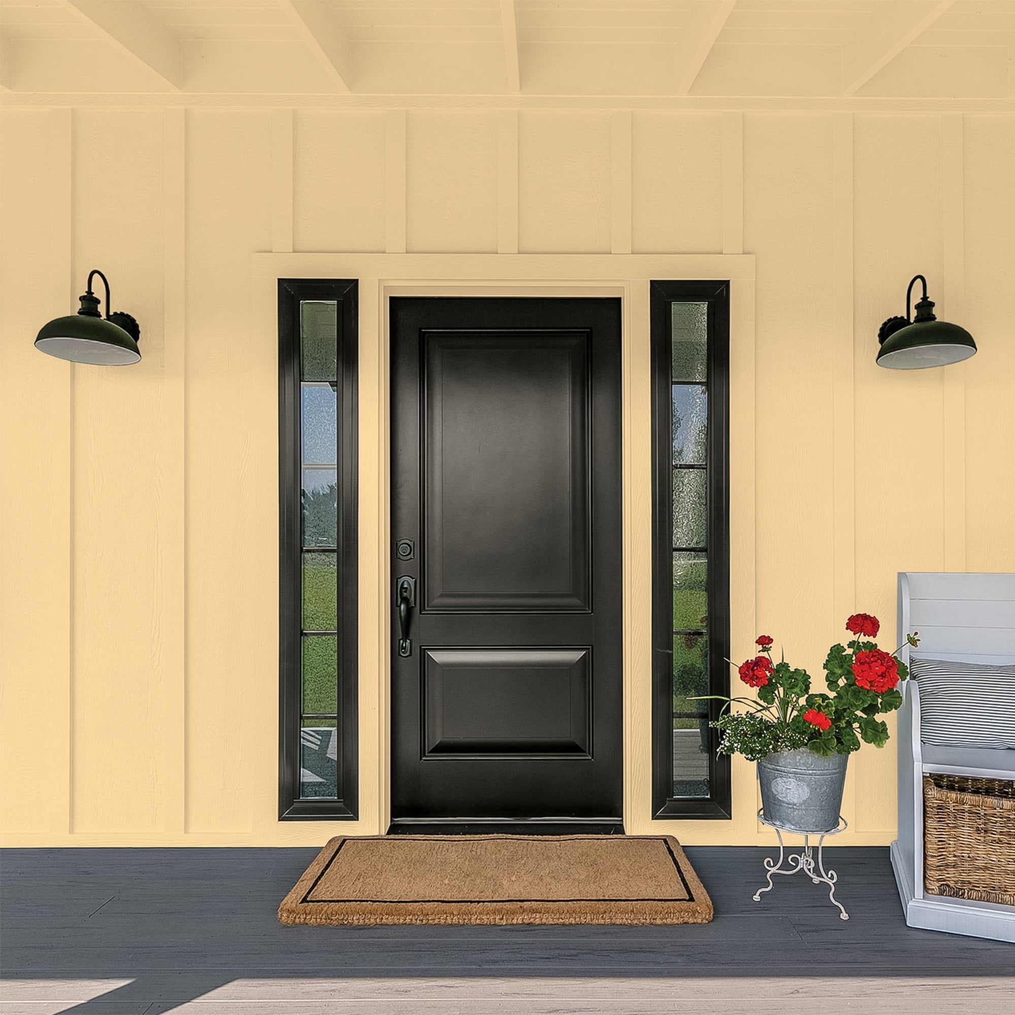 100% acrylic exterior paint & primer all-in-one Outstanding hiding and coverage up to 400 sq. ft. per gallon Excellent fading, cracking and peeling resistance Excellent dirt resistance Low VOC Application down to 35 F; Dry time 30-60 minutes, Recoat 2-4 hours Available in a hand selected palette of our most popular colors