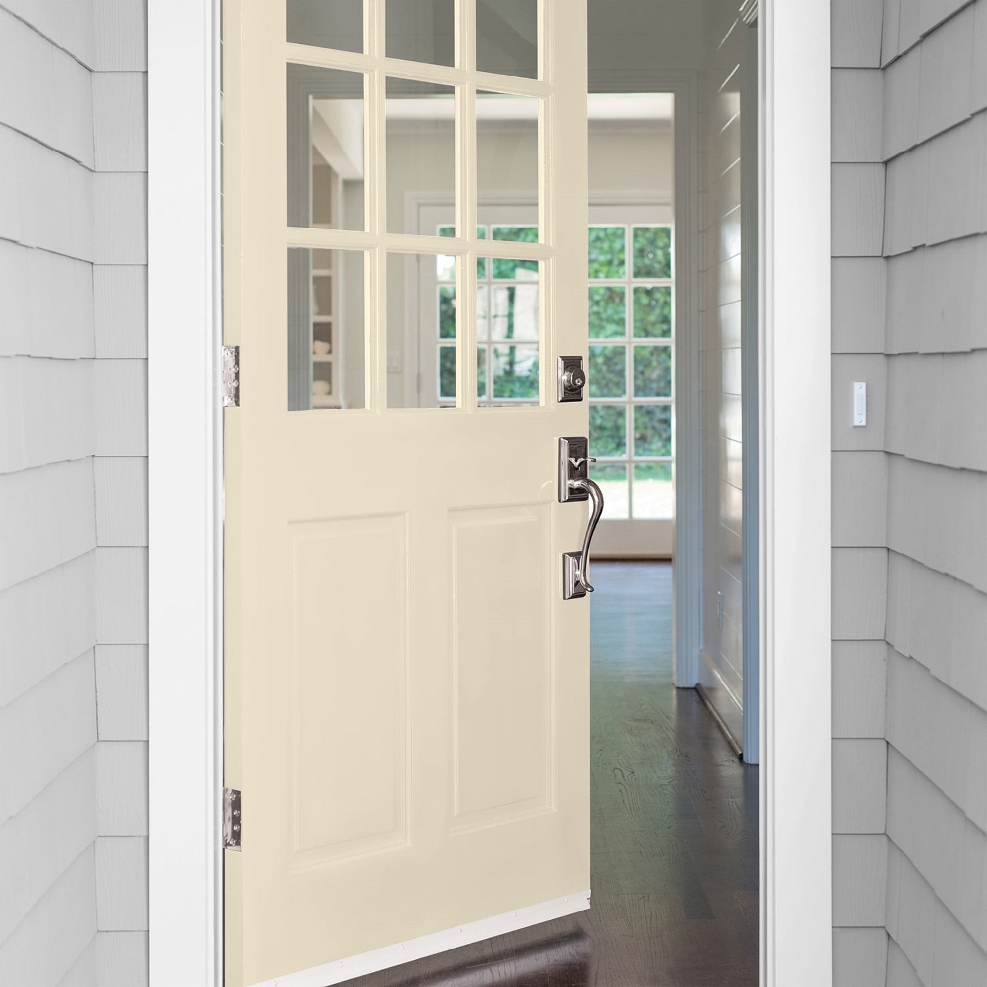 Glidden One Coat Exterior Paint is a super-premium quality paint that provides in one coat coverage* an enhance UV protection finish. This 100% acrylic paint provides a mildew resistant coating, excellent hide and adhesion, and exceptional resistance to fading, cracking & peeling on many exterior projects including properly prepared, exterior wood, brick, masonry, concrete, weathered aluminum, and primed metal substrates. Available in Flat, Satin, Semi-Gloss Sheens. Heavy Cream is a light, neutral, sepia off-white and the undertone is umber. This paint color makes any room look perfect. Combine it with honeyed or deeper-toned woods and white paneling or shiplap.