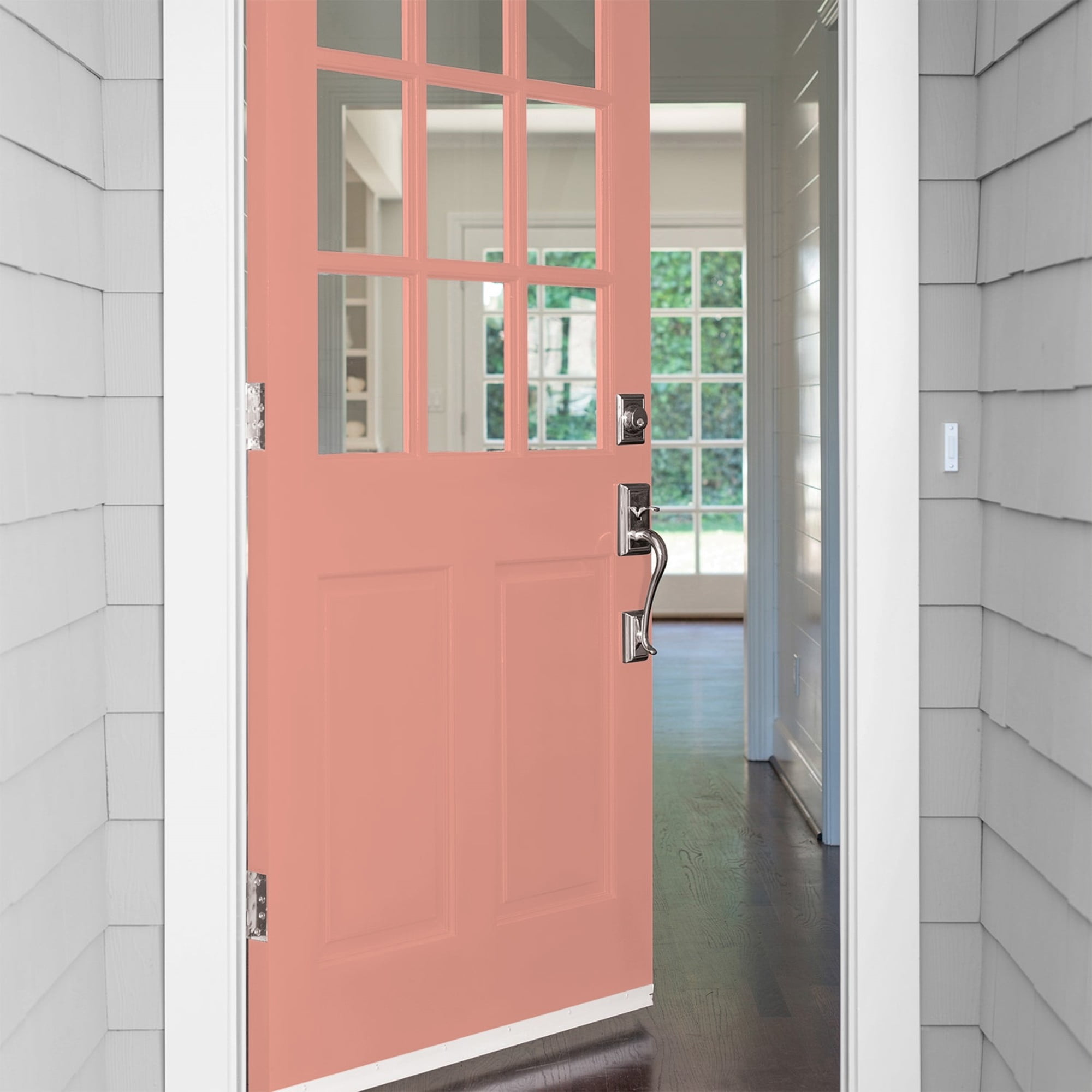 Glidden One Coat Exterior Paint is a super-premium quality paint that provides in one coat coverage* an enhance UV protection finish. This 100% acrylic paint provides a mildew resistant coating, excellent hide and adhesion, and exceptional resistance to fading, cracking & peeling on many exterior projects including properly prepared, exterior wood, brick, masonry, concrete, weathered aluminum, and primed metal substrates. Available in Flat, Satin, Semi-Gloss Sheens. Holland Tile is a saturated, muted, salmon red and the undertone is brick. This paint color is perfect for a kitchen area. Combine it with white trim.