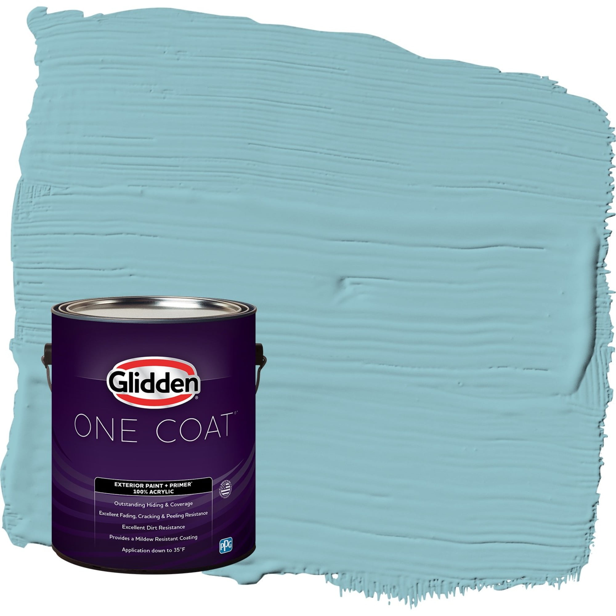 Glidden One Coat Kingston Aqua / Blue Semi-Gloss Exterior Paint with Primer, 1 Gallon