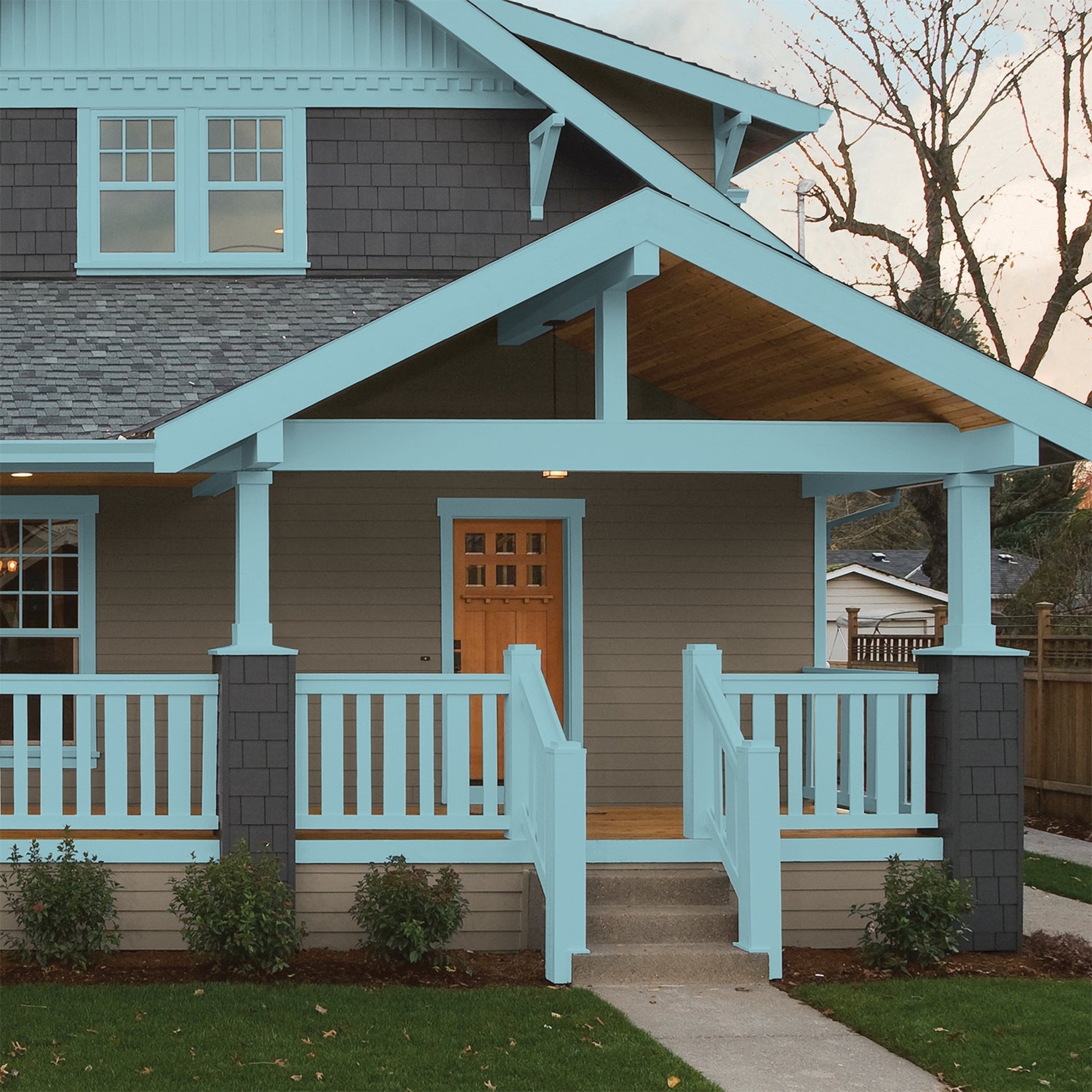 Glidden One Coat Exterior Paint is a super-premium quality paint that provides in one coat coverage* an enhance UV protection finish. This 100% acrylic paint provides a mildew resistant coating, excellent hide and adhesion, and exceptional resistance to fading, cracking & peeling on many exterior projects including properly prepared, exterior wood, brick, masonry, concrete, weathered aluminum, and primed metal substrates. Available in Flat, Satin, Semi-Gloss Sheens. Kingston Aqua is a midtone, muted, marine aqua-blue and the undertone is a deep-water blue. This paint color is perfect for a calming bedroom. Combine it with sandy tones for a beachy theme.