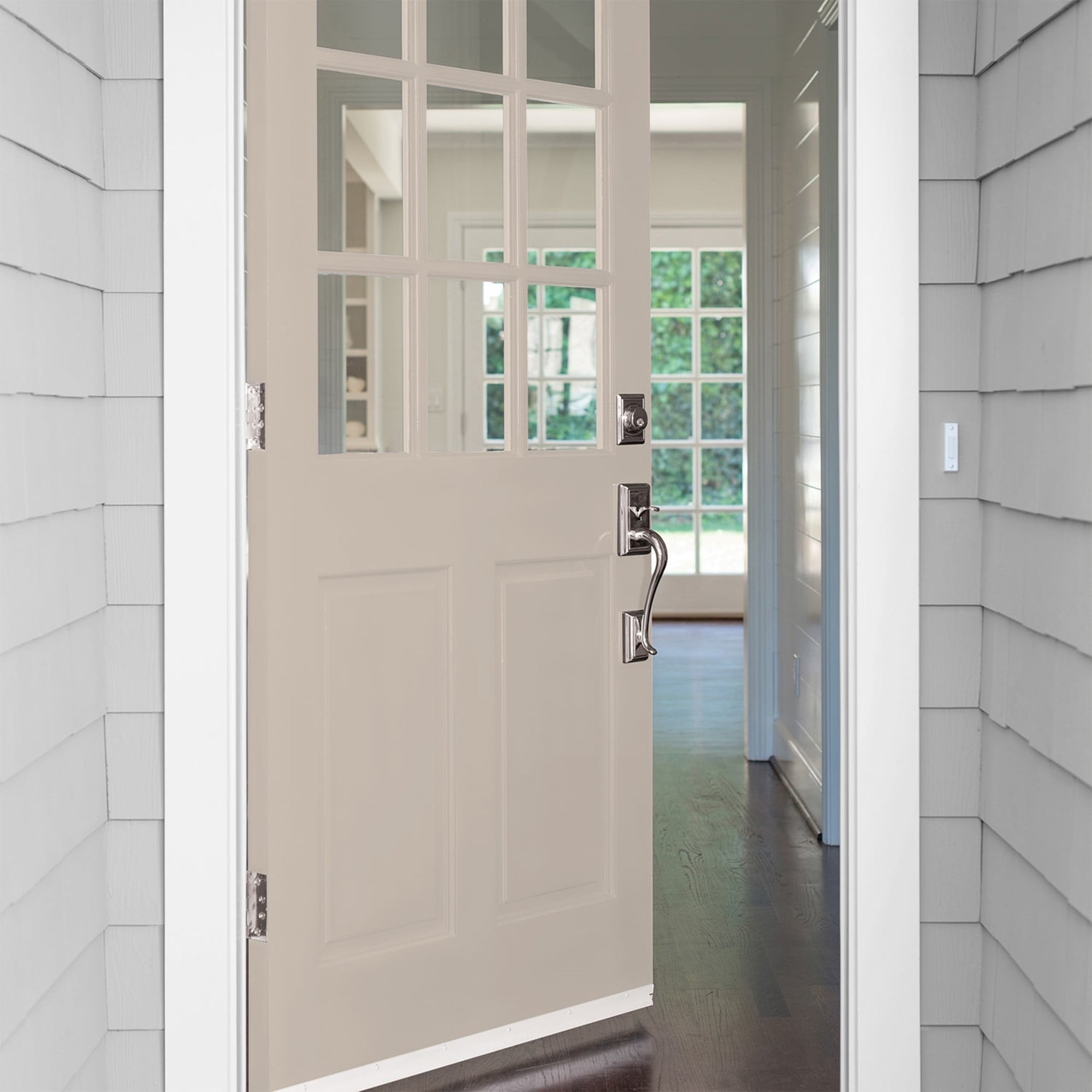 Glidden One Coat Exterior Paint is a super-premium quality paint that provides in one coat coverage* an enhance UV protection finish. This 100% acrylic paint provides a mildew resistant coating, excellent hide and adhesion, and exceptional resistance to fading, cracking & peeling on many exterior projects including properly prepared, exterior wood, brick, masonry, concrete, weathered aluminum, and primed metal substrates. Available in Flat, Satin, Semi-Gloss Sheens. Legendary is a soft, gray, millennial beige and the undertone is silvery. This paint color is perfect for a living room or exterior home. Combine it with white trim.