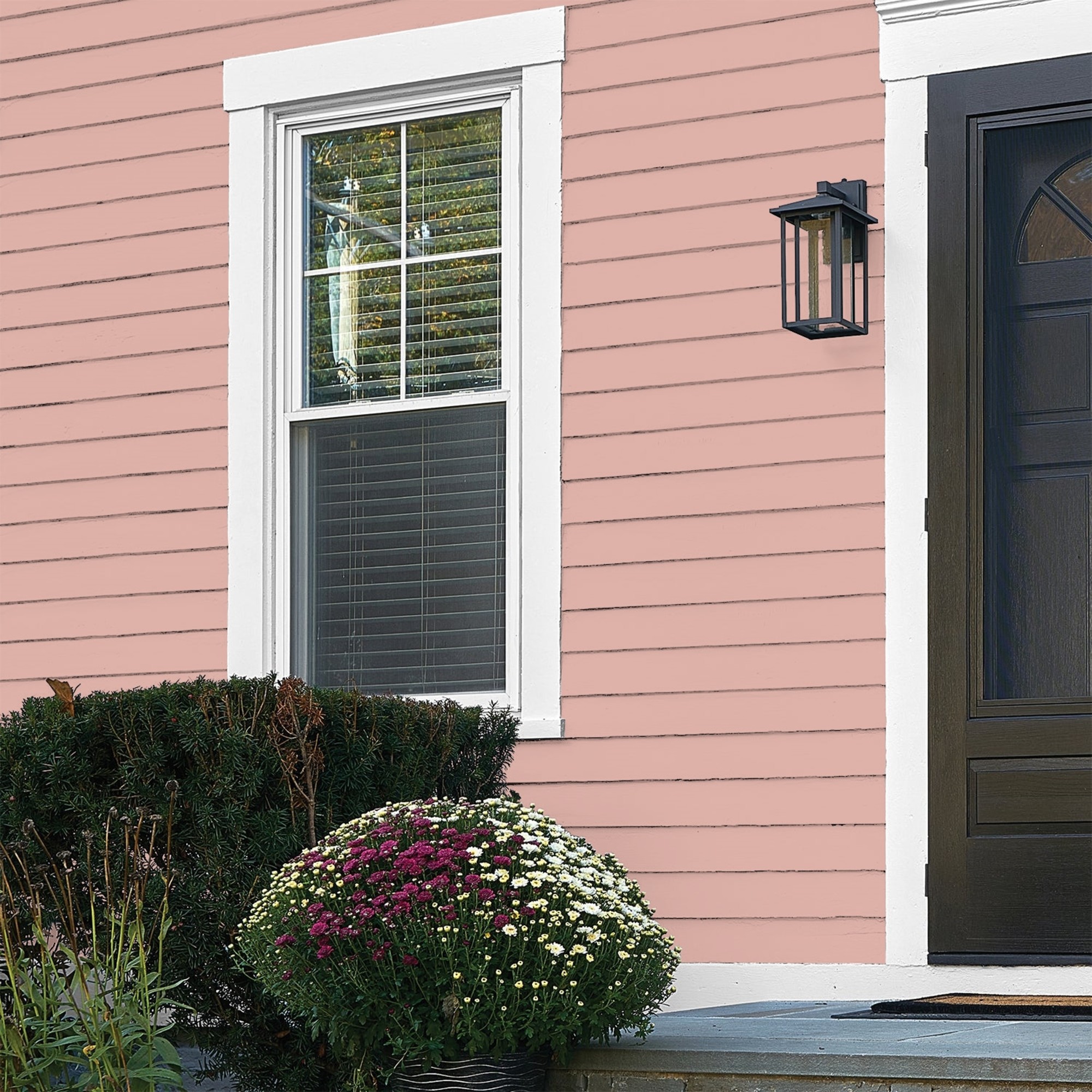 Glidden One Coat Exterior Paint is a super-premium quality paint that provides in one coat coverage* an enhance UV protection finish. This 100% acrylic paint provides a mildew resistant coating, excellent hide and adhesion, and exceptional resistance to fading, cracking & peeling on many exterior projects including properly prepared, exterior wood, brick, masonry, concrete, weathered aluminum, and primed metal substrates. Available in Flat, Satin, Semi-Gloss Sheens. Mesa Pink is a midtone, subdued, spiced pink and the undertone is Sedona red rock. This color is perfect to paint a bedroom or a living. Combine it with black or navy.