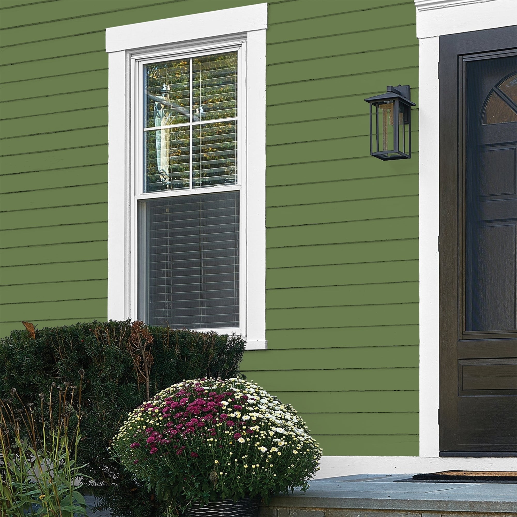 100% acrylic exterior paint & primer all-in-one Outstanding hiding and coverage up to 400 sq. ft. per gallon Excellent fading, cracking and peeling resistance Excellent dirt resistance Low VOC Application down to 35 F; Dry time 30-60 minutes, Recoat 2-4 hours Available in a hand selected palette of our most popular colors
