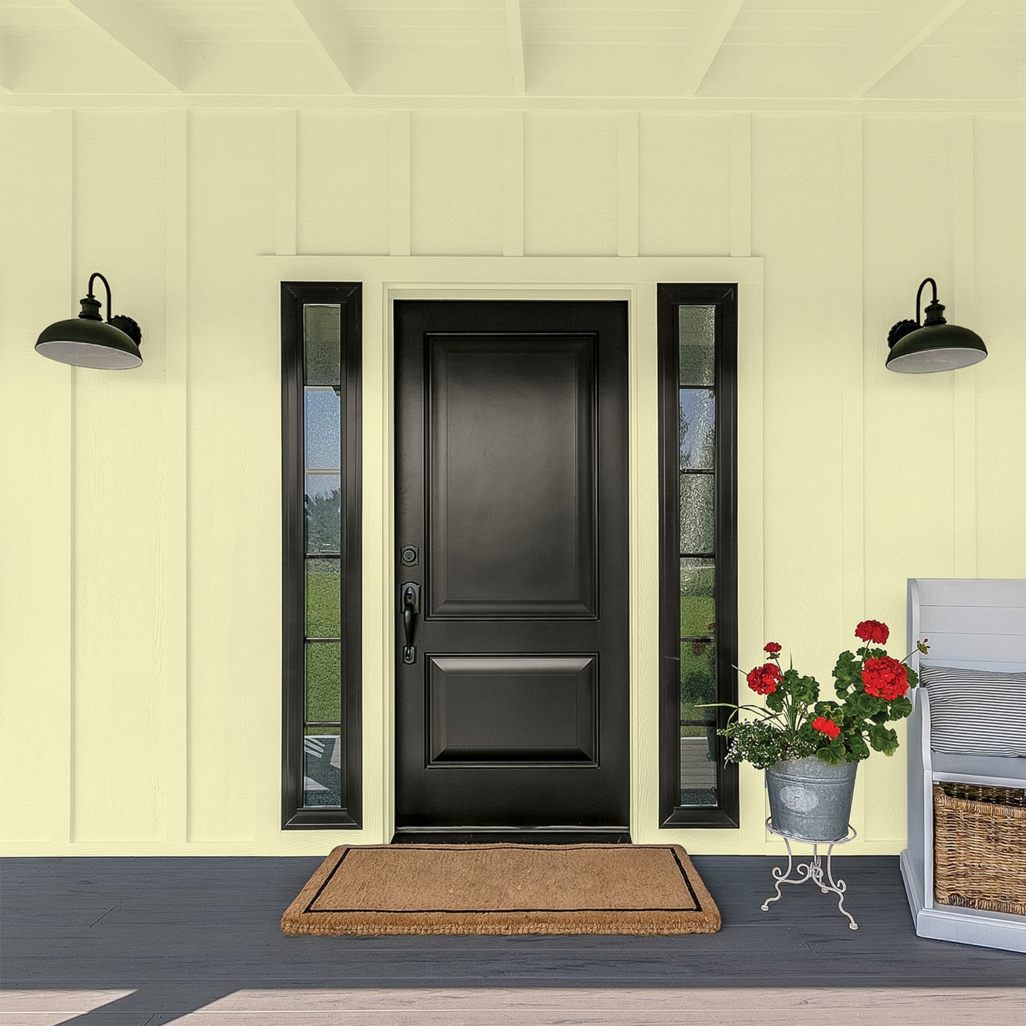 100% acrylic exterior paint & primer all-in-one Outstanding hiding and coverage up to 400 sq. ft. per gallon Excellent fading, cracking and peeling resistance Excellent dirt resistance Low VOC Application down to 35 F; Dry time 30-60 minutes, Recoat 2-4 hours Available in a hand selected palette of our most popular colors