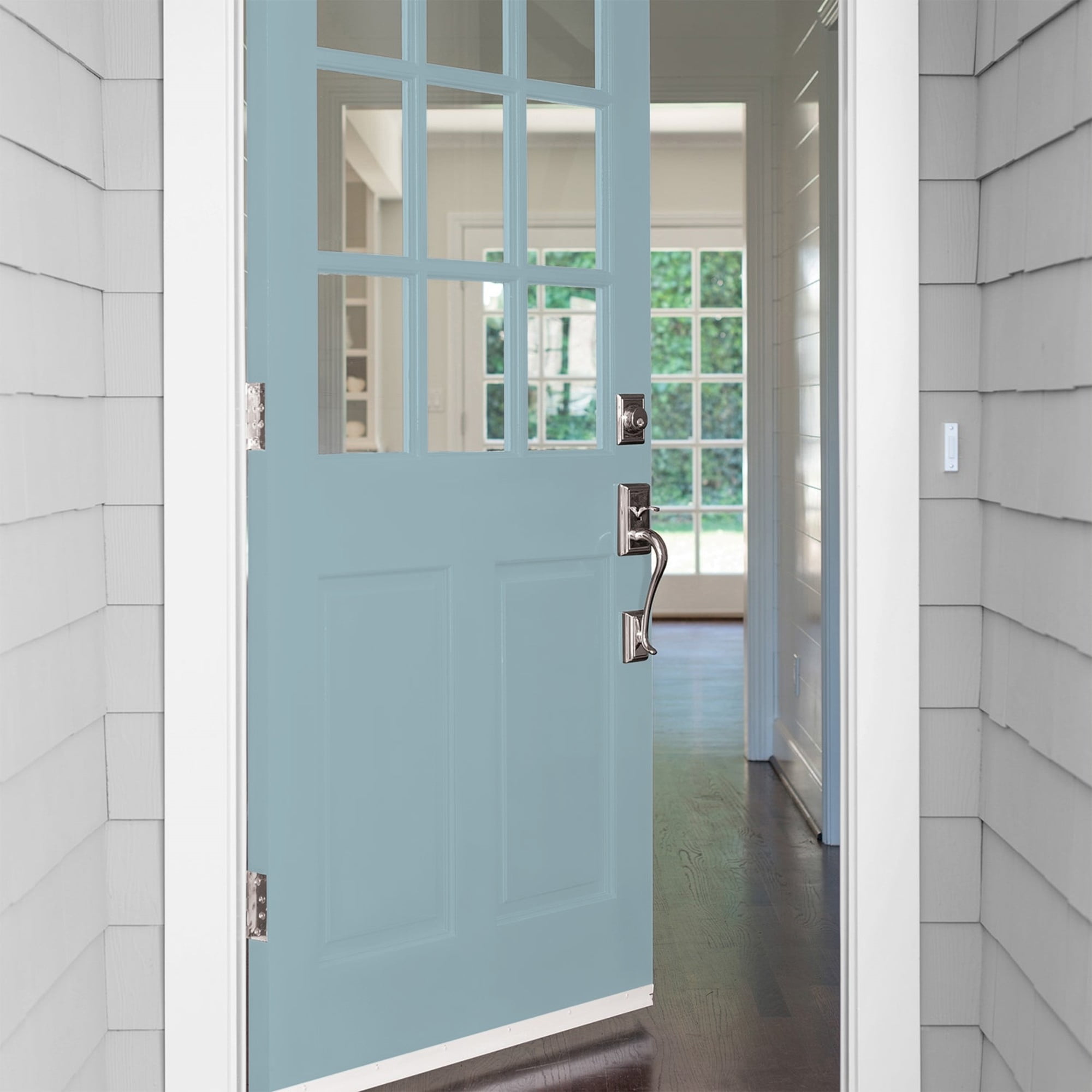 Glidden One Coat Exterior Paint is a super-premium quality paint that provides in one coat coverage* an enhance UV protection finish. This 100% acrylic paint provides a mildew resistant coating, excellent hide and adhesion, and exceptional resistance to fading, cracking & peeling on many exterior projects including properly prepared, exterior wood, brick, masonry, concrete, weathered aluminum, and primed metal substrates. Available in Flat, Satin, Semi-Gloss Sheens. Mountain Stream is a midtone, subdued, Caribbean blue and the undertone is turquoise. This paint color is perfect for a dreamy bedroom. Combine it with shades of coral for a pop of color or all teal shades.
