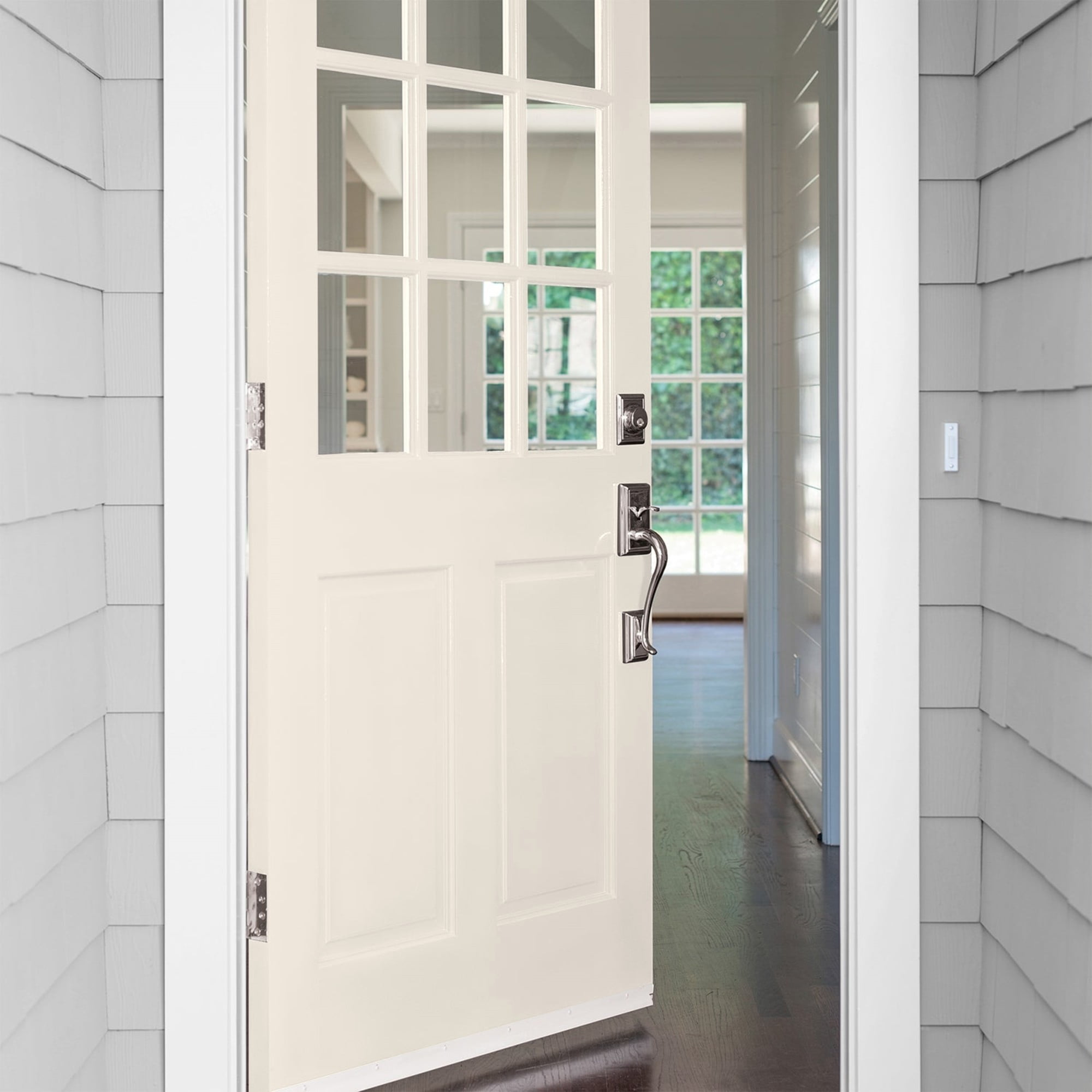 Glidden One Coat Exterior Paint is a super-premium quality paint that provides in one coat coverage* an enhance UV protection finish. This 100% acrylic paint provides a mildew resistant coating, excellent hide and adhesion, and exceptional resistance to fading, cracking & peeling on many exterior projects including properly prepared, exterior wood, brick, masonry, concrete, weathered aluminum, and primed metal substrates. Available in Flat, Satin, Semi-Gloss Sheens. Pearls And Lace is a pale, shaded, veiled white and the undertone is red. This paint color makes any room look perfect. Combine it with white trim.