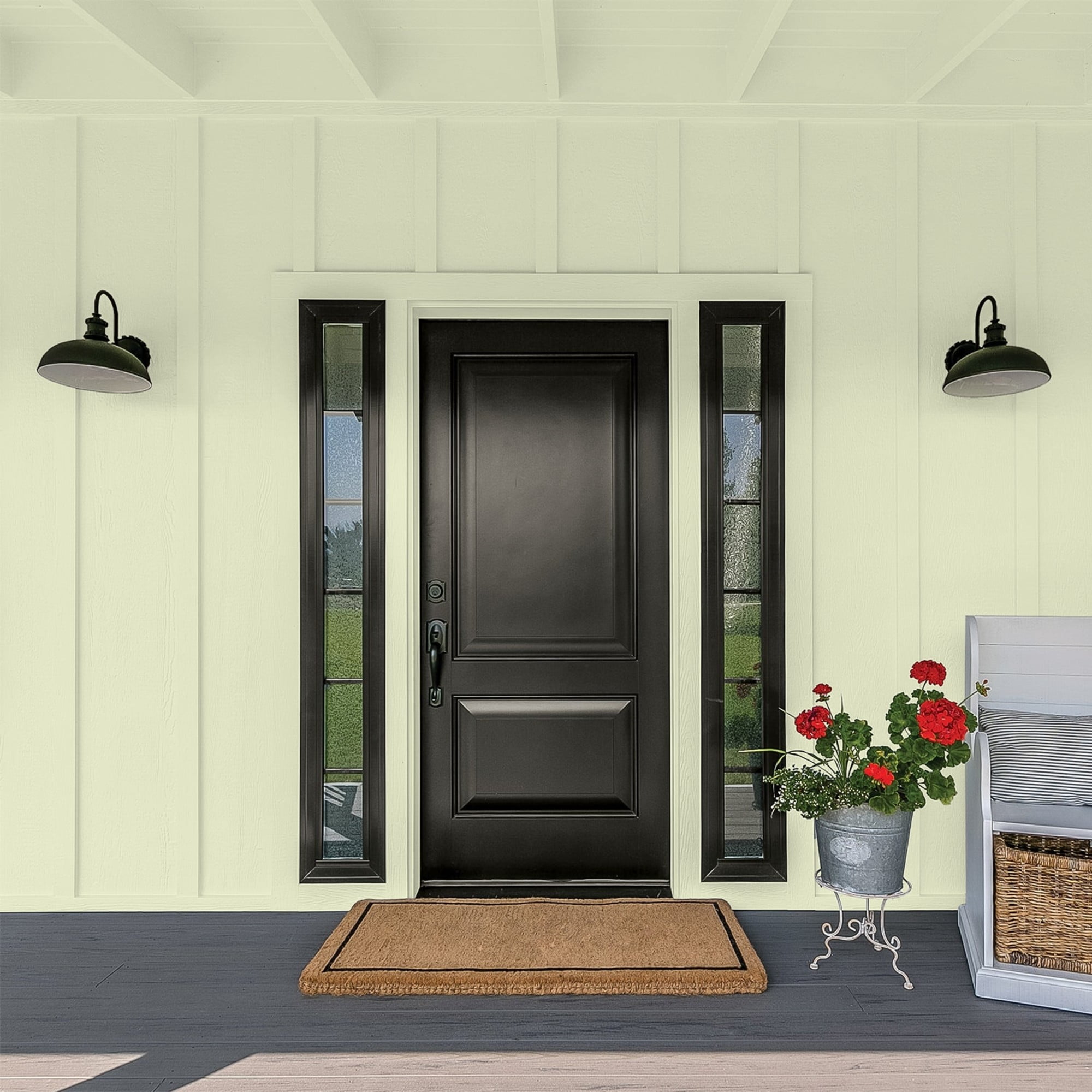 Glidden One Coat Exterior Paint is a super-premium quality paint that provides in one coat coverage* an enhance UV protection finish. This 100% acrylic paint provides a mildew resistant coating, excellent hide and adhesion, and exceptional resistance to fading, cracking & peeling on many exterior projects including properly prepared, exterior wood, brick, masonry, concrete, weathered aluminum, and primed metal substrates. Available in Flat, Satin, Semi-Gloss Sheens. Pickling Spice is a soft, subdued, mint green and the undertone is yellow. This paint color is perfect for all the walls in a space. Combine it with honeyed woods, warm reds, and golds.
