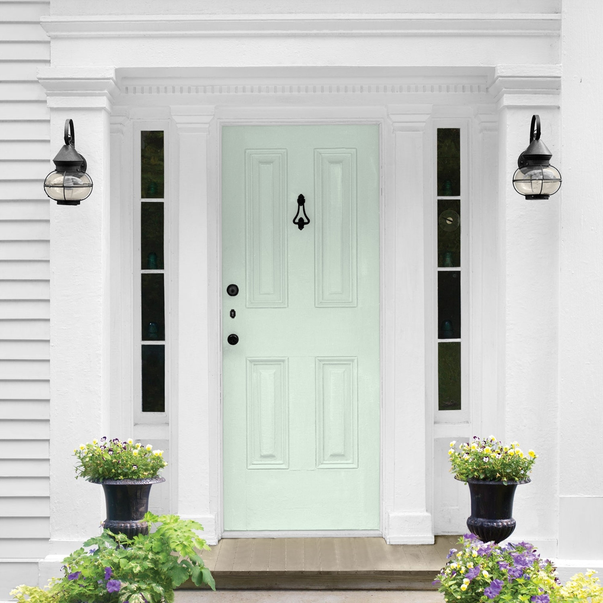 Glidden One Coat Exterior Paint is a super-premium quality paint that provides in one coat coverage* an enhance UV protection finish. This 100% acrylic paint provides a mildew resistant coating, excellent hide and adhesion, and exceptional resistance to fading, cracking & peeling on many exterior projects including properly prepared, exterior wood, brick, masonry, concrete, weathered aluminum, and primed metal substrates. Available in Flat, Satin, Semi-Gloss Sheens. Tint Of Green is a pale, bright, crisp clover green and the undertone is Kelly green. This paint color is perfect for a meditation space or room for fresh Zen-like appeal. Combine it with soft pink accents for an aristocratic look.