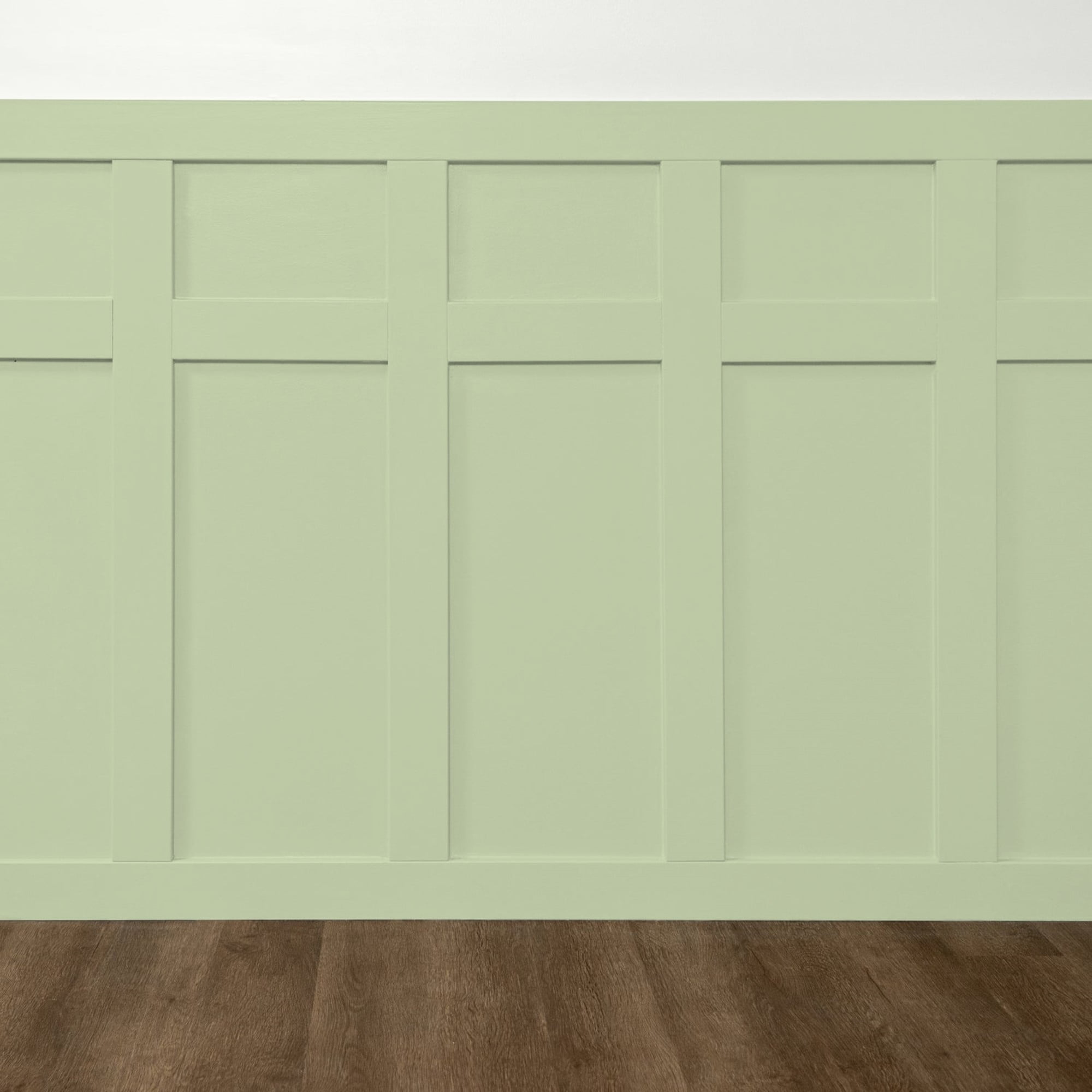 Glidden Spred is a multi-purpose interior latex paint + primer. This low odor/zero VOC* paint provides good hiding and is scrubbable and washable to withstand repeated cleanings. Ideal for use on properly prepared interior walls, ceilings, or trim composed of new or previous ly painted drywall, plaster, masonry, wood and metal. *Colorants added to this base paint may increase VOC level significantly depending on color choices. Quaking Grass is a midtone, subdued, glass bottle green and the undertone is viney. This paint color is perfect for a dining nook. Combine it with accents of soft oranges and golds.