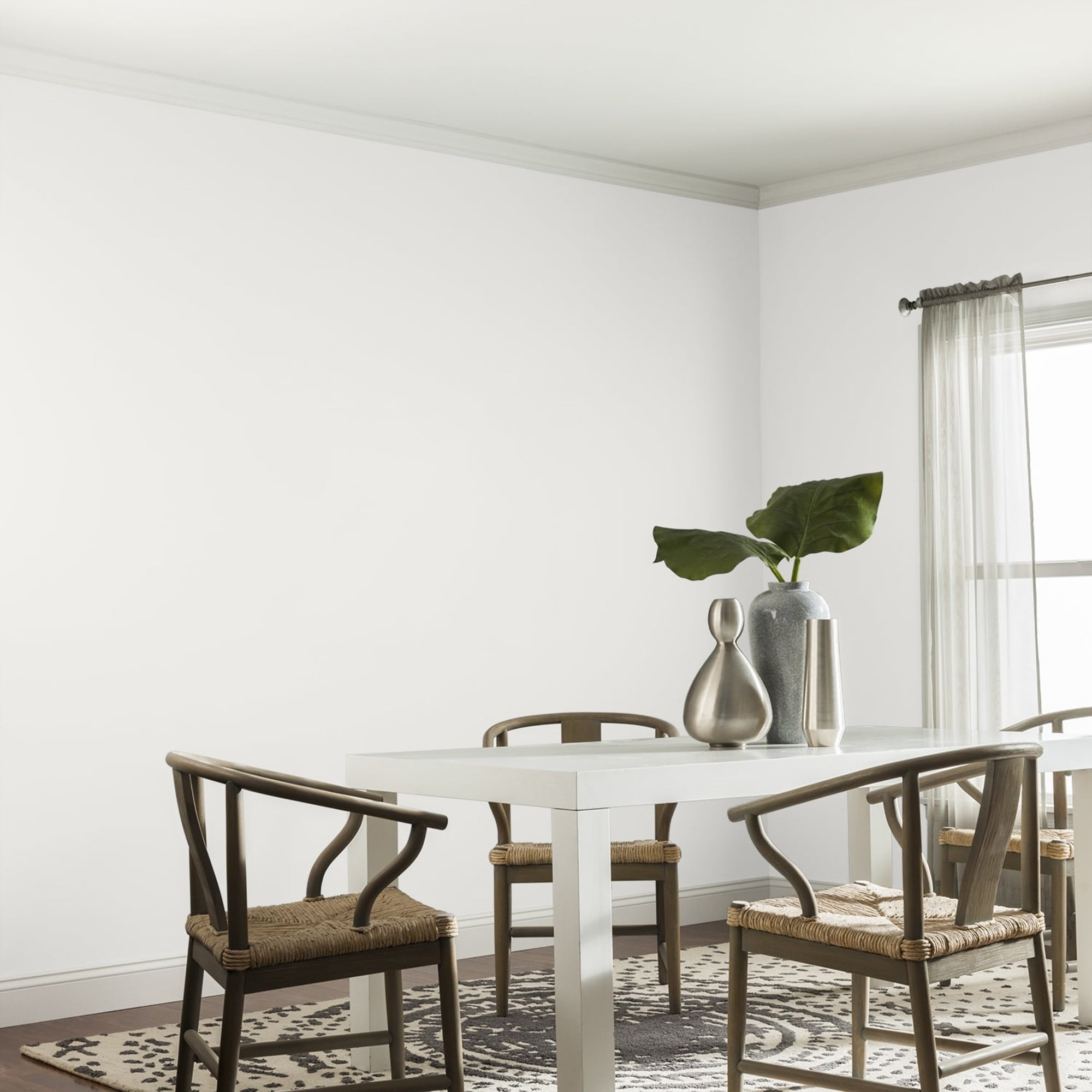 Glidden Spred is a multi-purpose interior latex paint + primer. This low odor/zero VOC* paint provides good hiding and is scrubbable and washable to withstand repeated cleanings. Ideal for use on properly prepared interior walls, ceilings, or trim composed of new or previous ly painted drywall, plaster, masonry, wood and metal. *Colorants added to this base paint may increase VOC level significantly depending on color choices. Silver Feather is a pale, gray, delicate white and the undertone is amethyst. This color is perfect to open up spaces and make them feel warm. Create an attractive area and combine it with deeper taupe colors or blue tones.