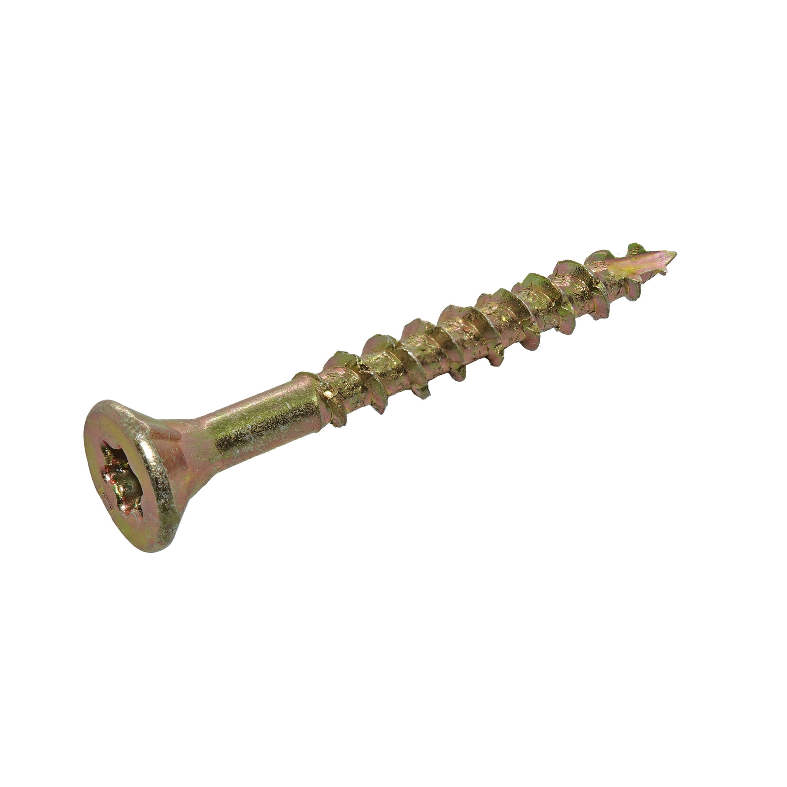 Coarse auger threads provide faster drilling and longer staying power in both soft and hard wood substrates Dual flat head with nibs creates a smooth finished surface and strong hold T-25 star drive for a solid connection between the tool tip and fastener Type 17 point reduces need for pre-drilling Designed for general construction projects Gold zinc coating for an attractive finish and some corrosion protection Package quantity approximately 1466 pieces