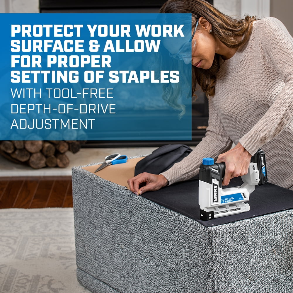 Easily drive staples to eliminate user fatigue Integrated knob control for quick depth of drive adjustments Accepts 1/4-9/16 staples Ideal for upholstery, insulation, floor underlayment, screen porch & chicken wire Limited 3-year warranty